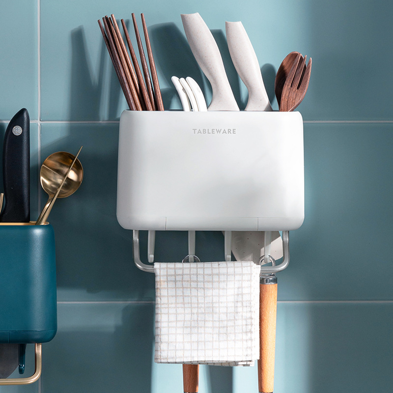Commodity name: Wall-mounted two-position knife holder with 4 hooks three-cell chopstick cage with aluminum alloy rag rod