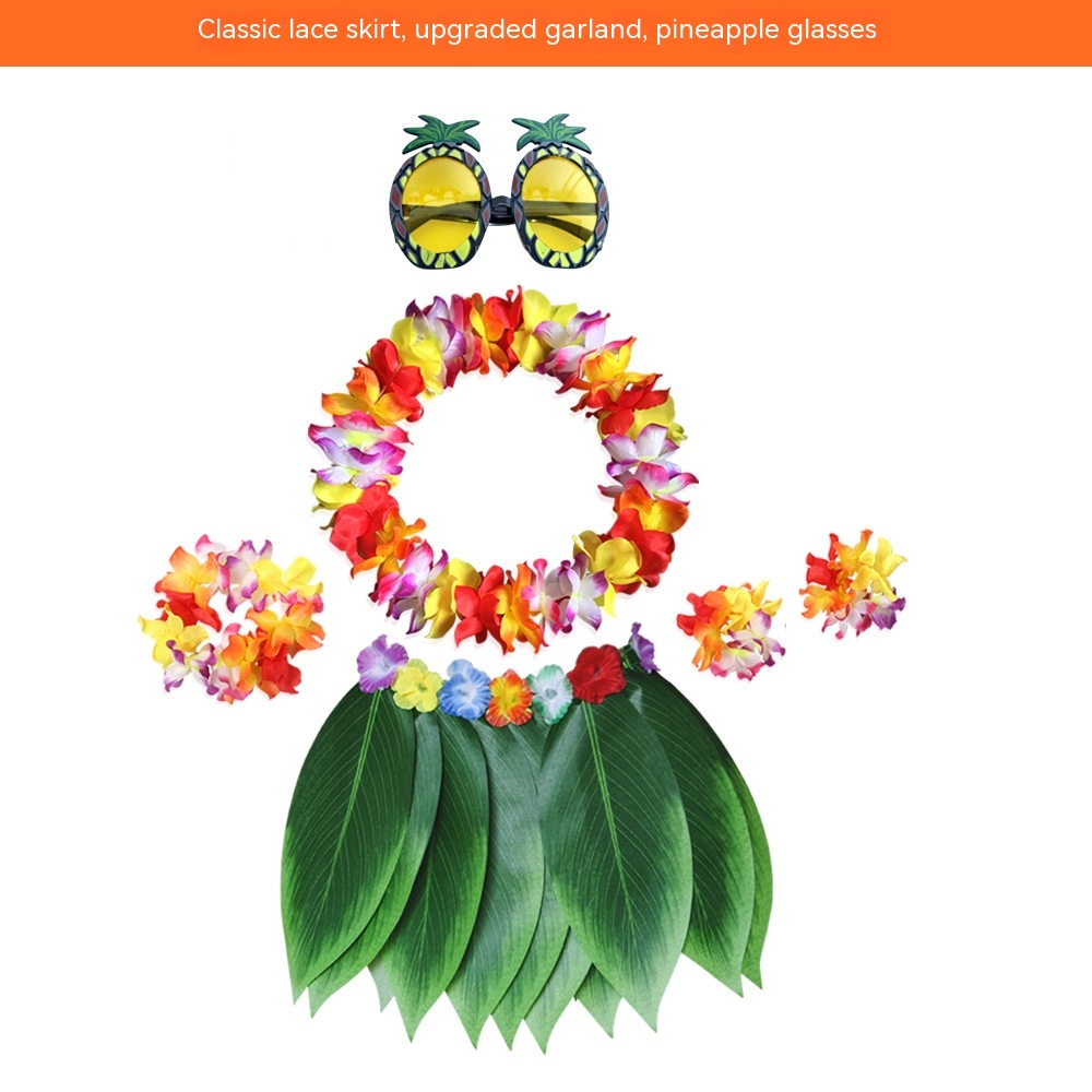 Color: 1 suit: classic flower and leaf skirt color upgrade plus size 4 piece set, 2 suit: classic flower and leaf skirt color upgrade plus size 4 piece set pineapple glasses plastic bra, 3 suit: classic flower and leaf skirt color upgrade plus size 4 PCs pineapple glasses, 4 suit: classic flower and leaf skirt color upgrade plus size 4 PCs plastic bra