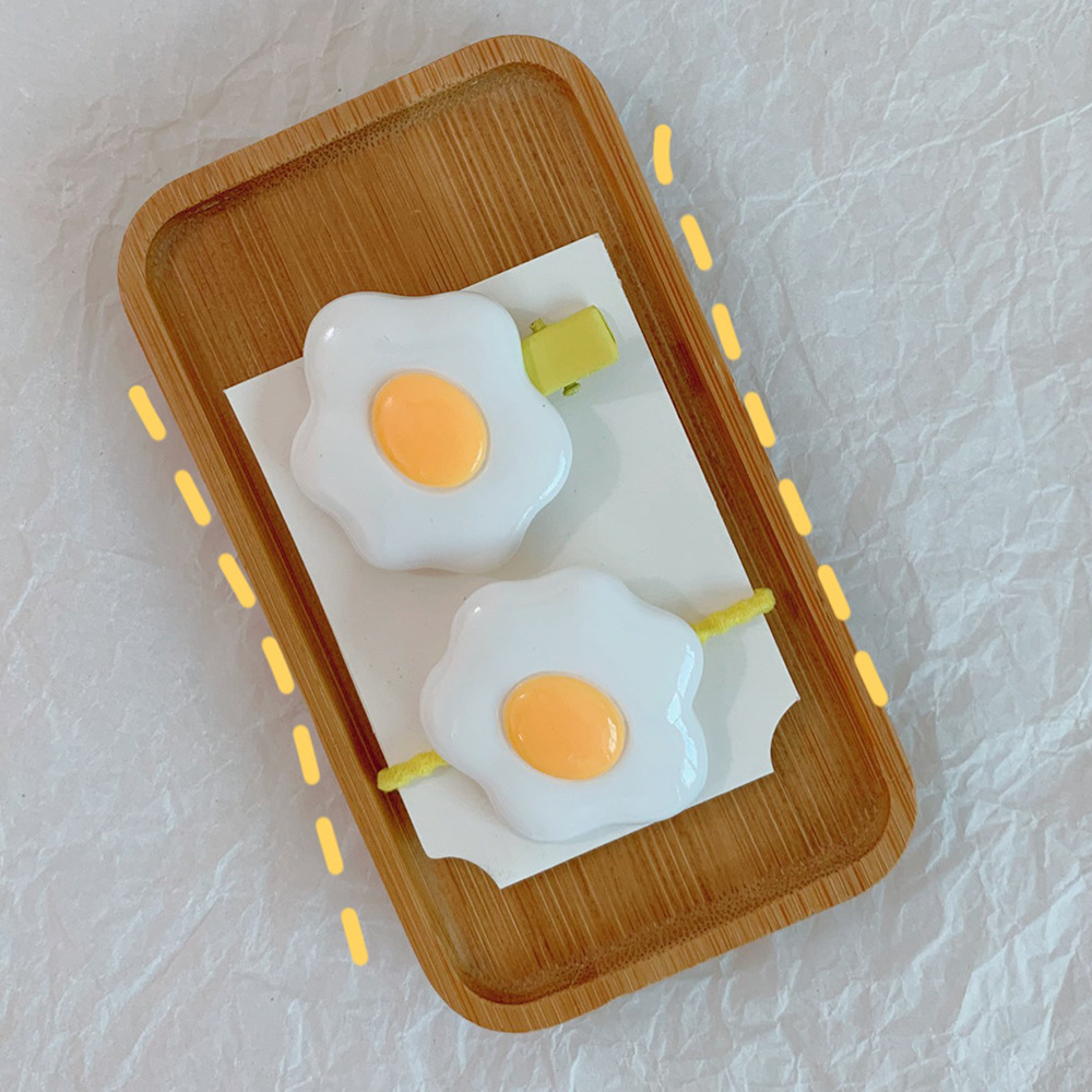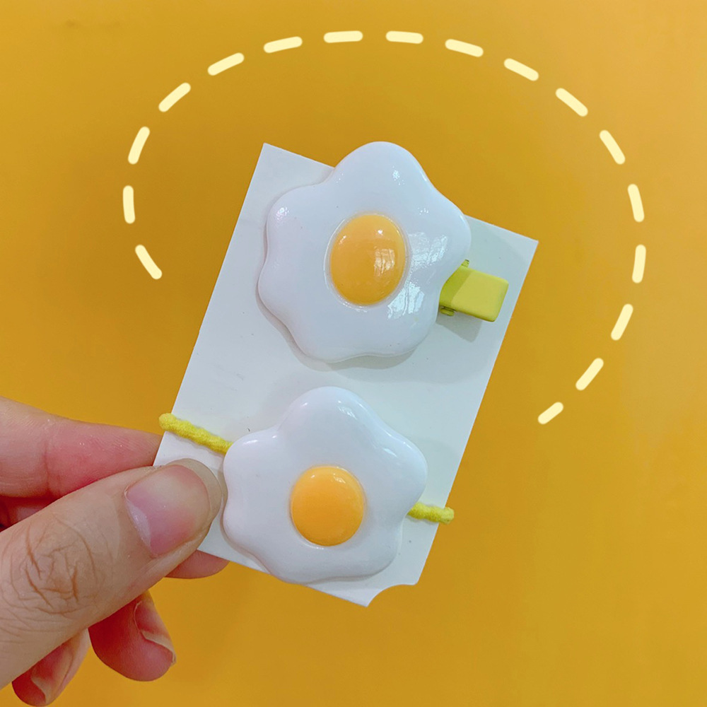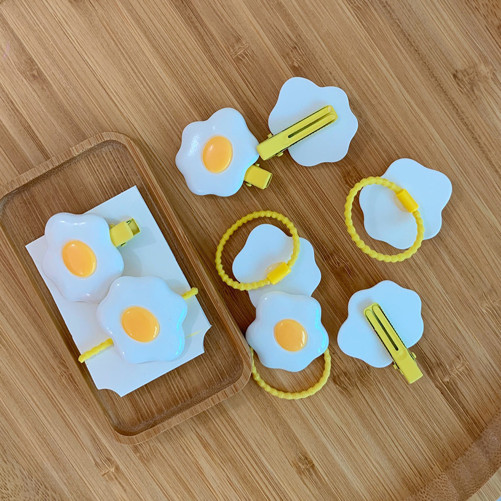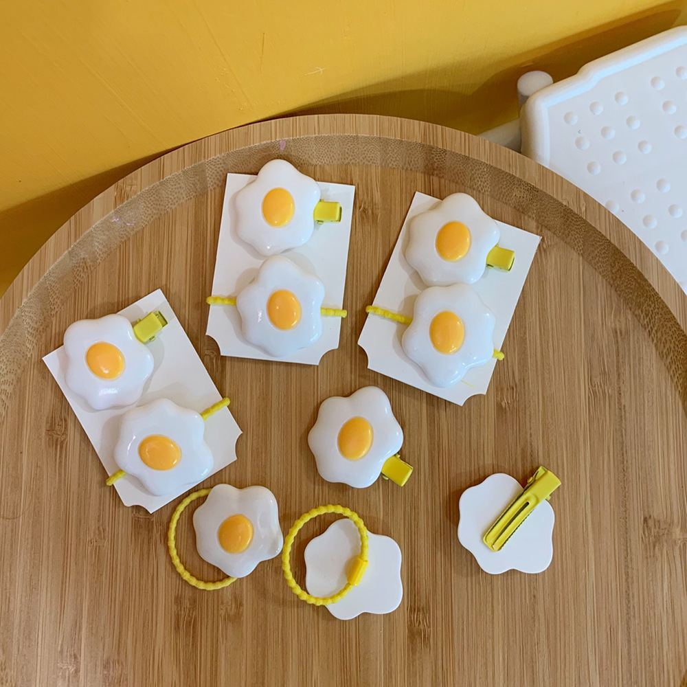 Material: plastic/resinStyle: cartoonStyle: Women'sModeling: GeometricProcessing technology: manualHairpin classification: side clipColor: 1#poached egg suit (hairpin + hair ring): yellow