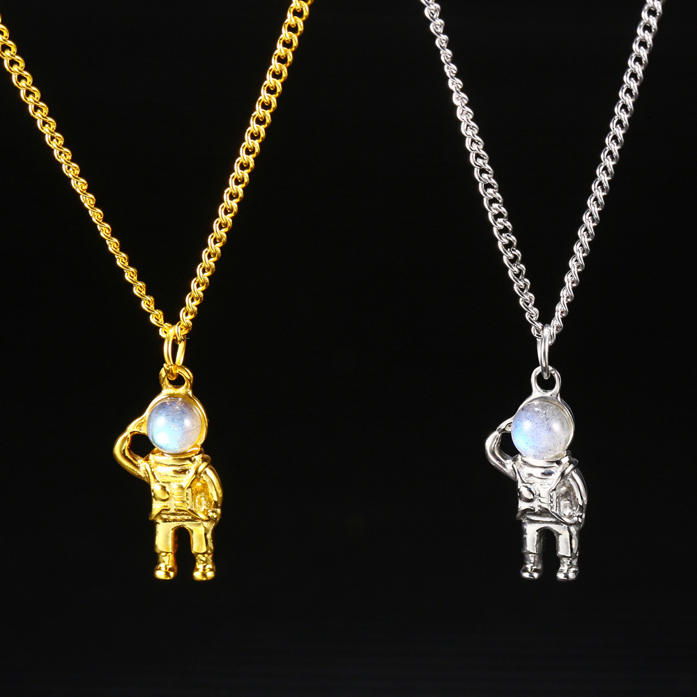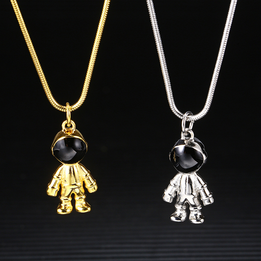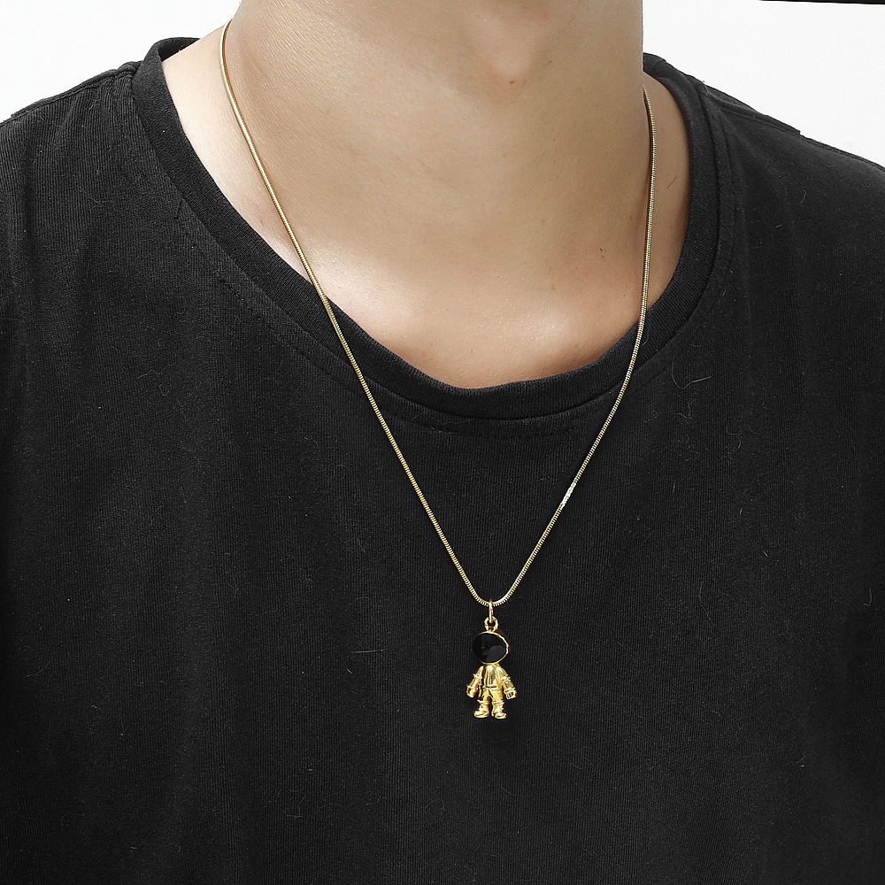 Material: titanium steelTreatment process: gold platingType: pendant, pendantStyle: Couple styleModeling: Astronaut SpacemanChain style: snake bone chainPendant material: titanium steel