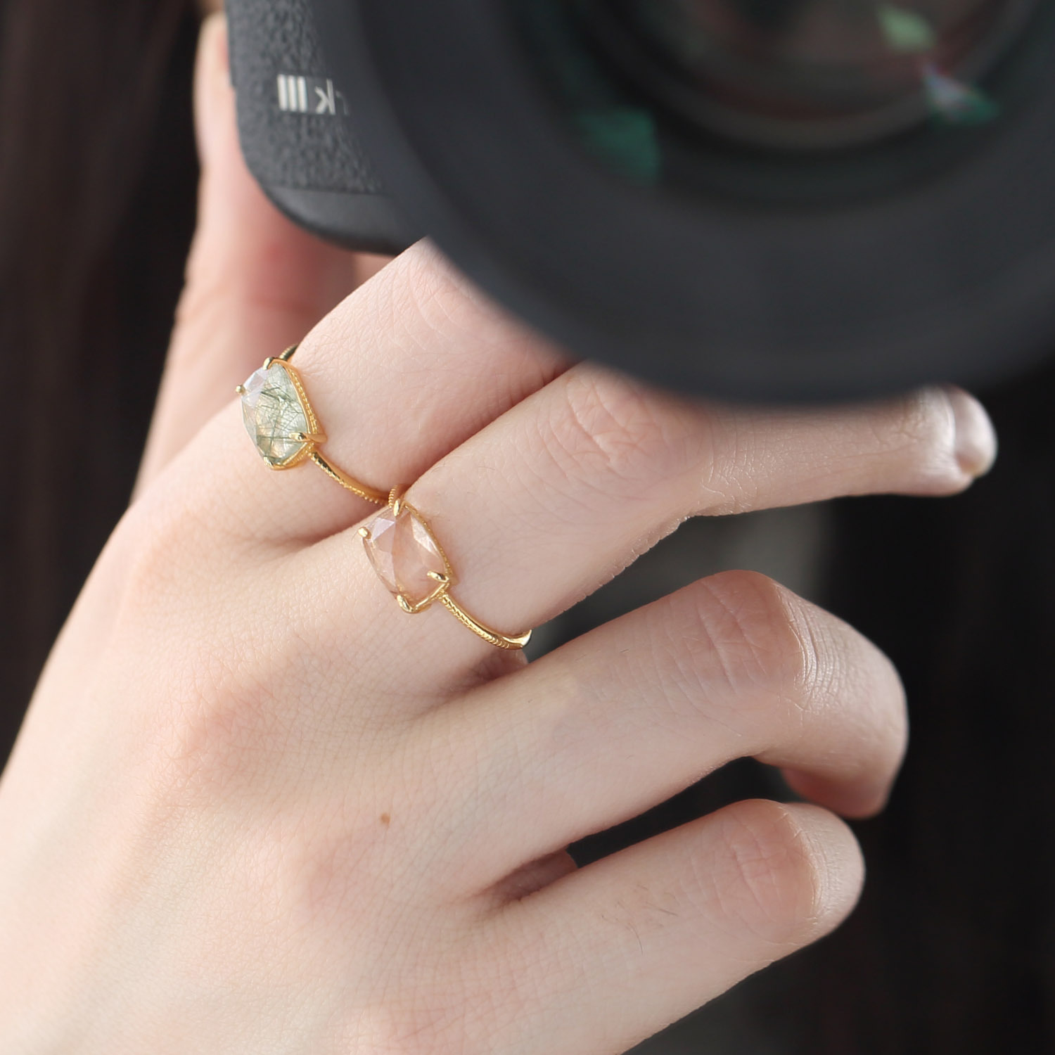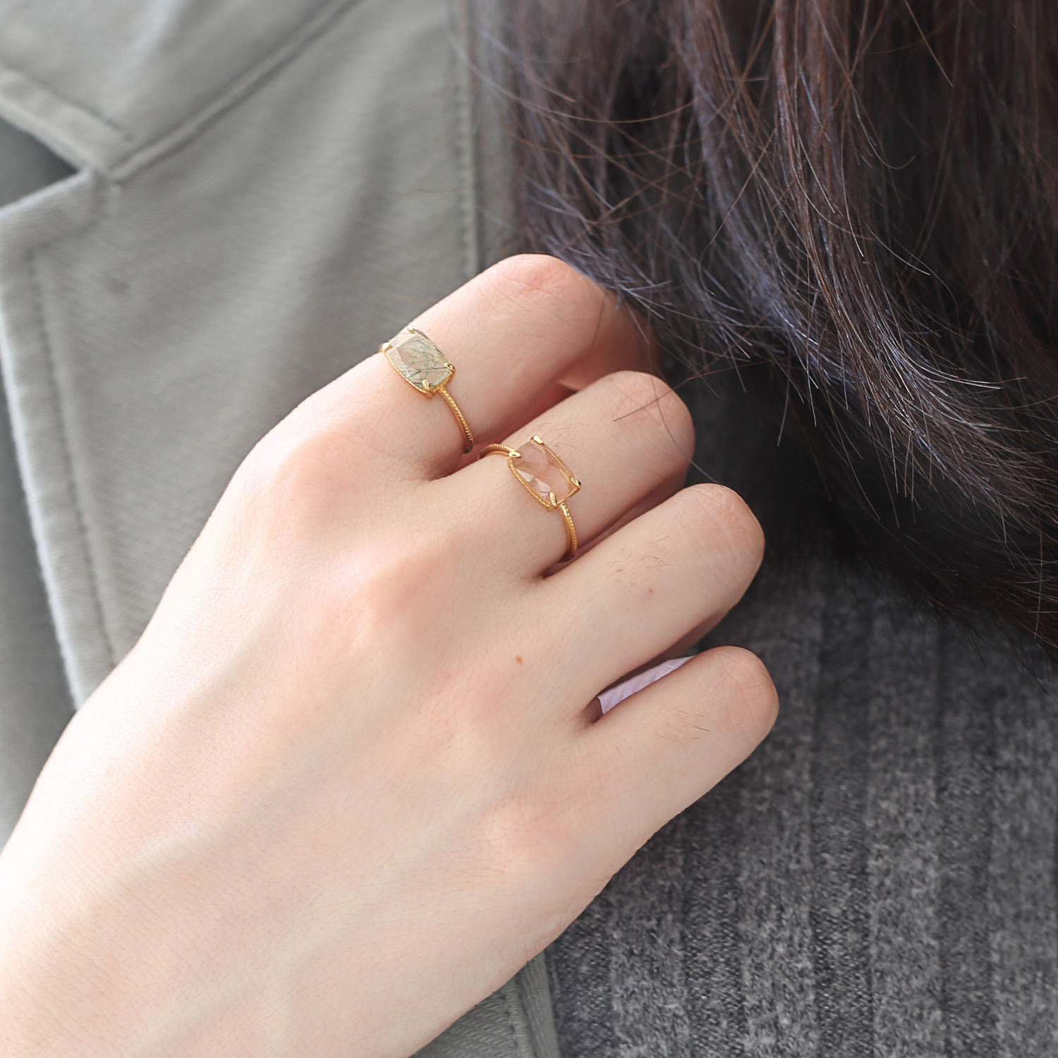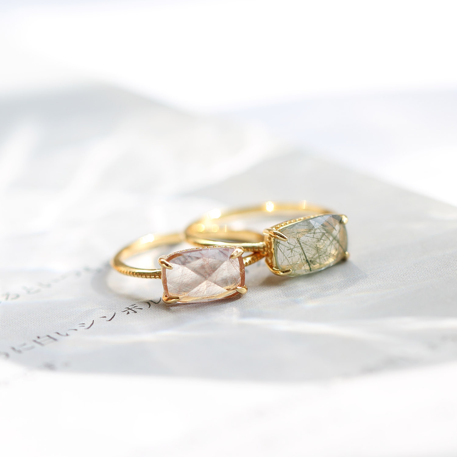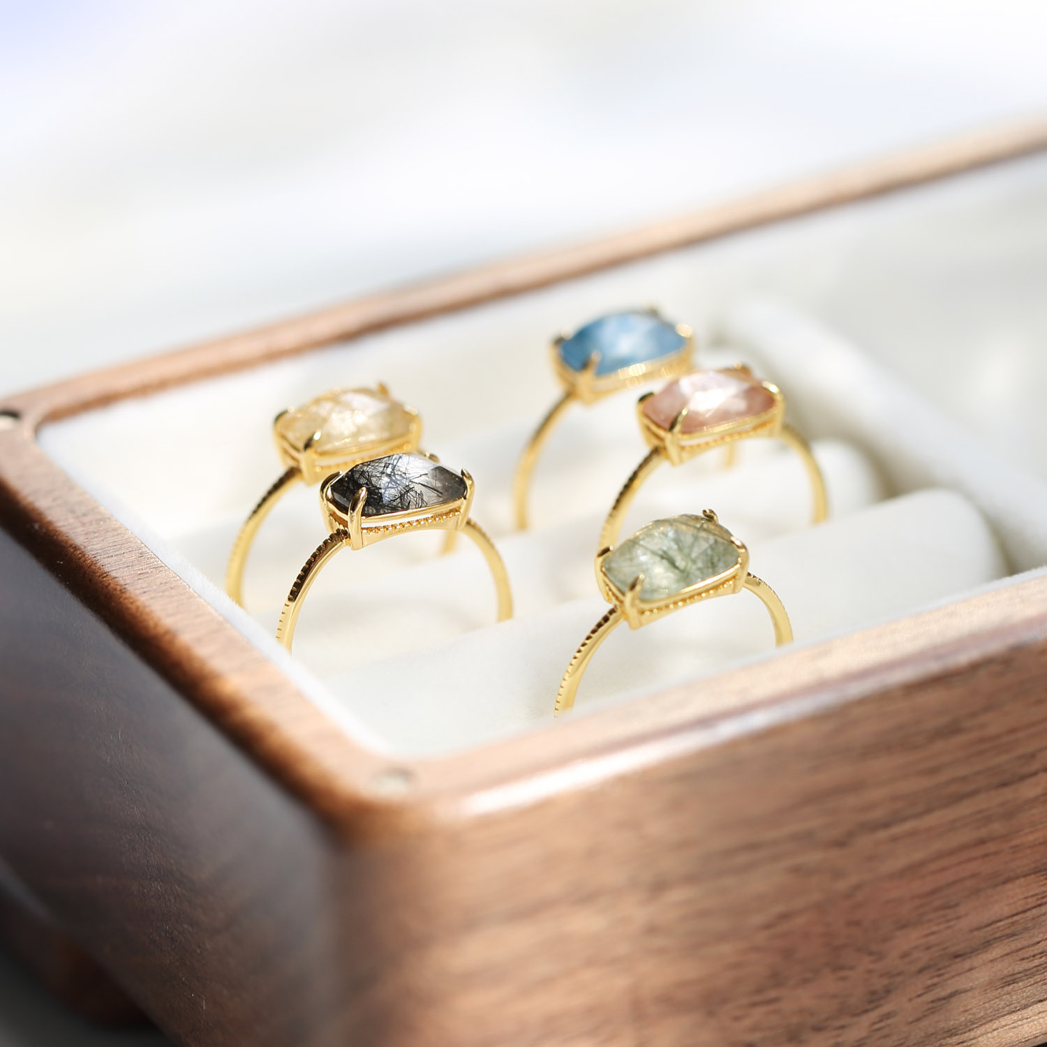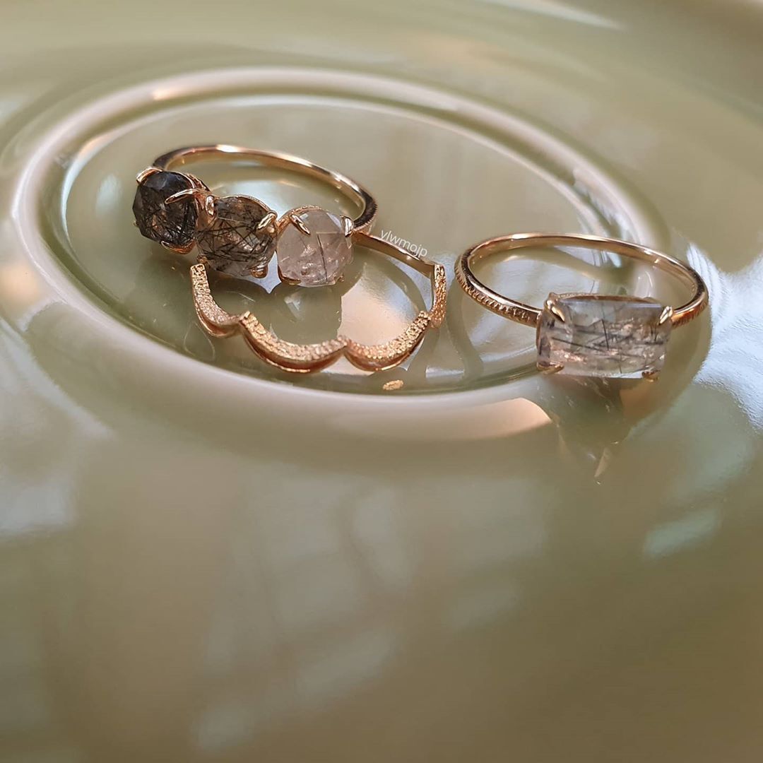 Color: red hair crystal ring, blue rutilated quartz ring, green quartz rutilated ring, black hair crystal ring, gold rutilated quartz ring