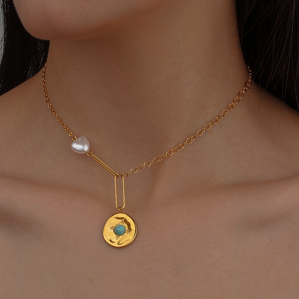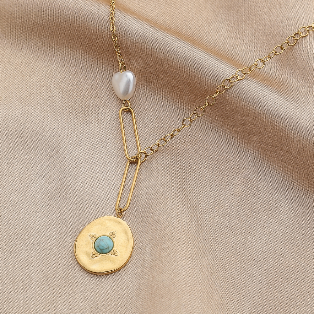 Fashion Simple Pendant Titanium Steel Pearl Necklace Clavicle Chain