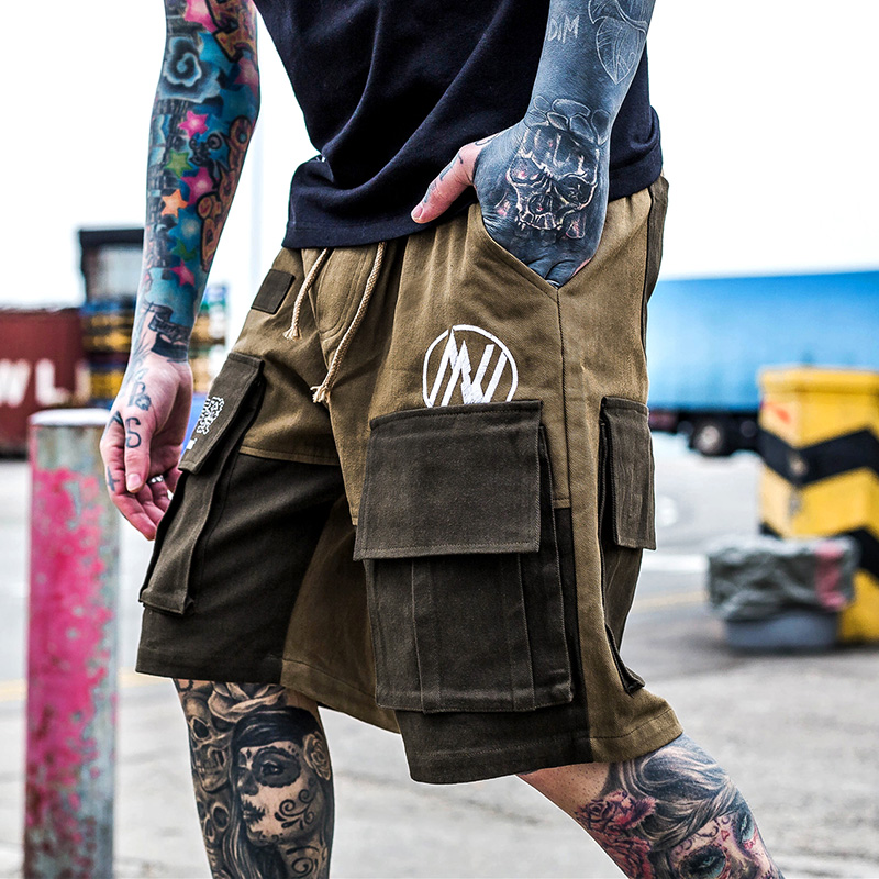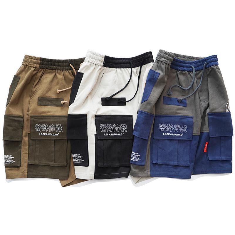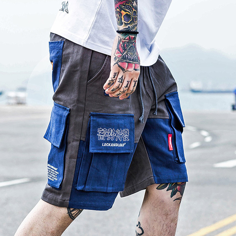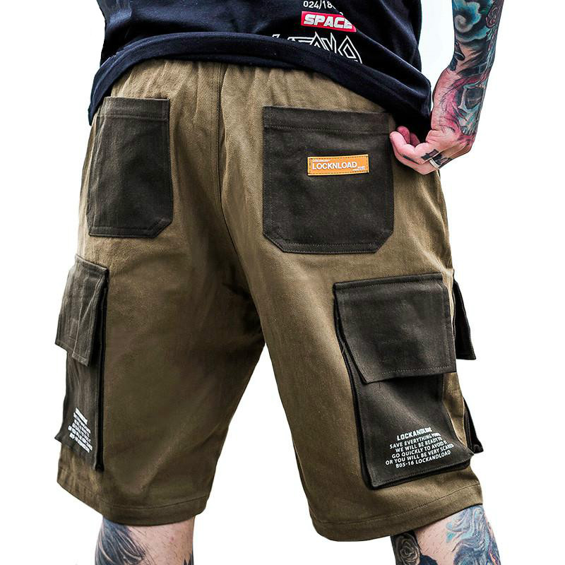 Male Youth Printed Letters Contrasting Color Stitching Multi-Pocket Shorts