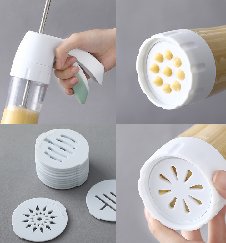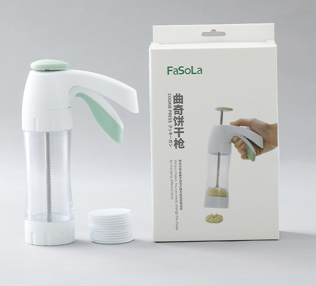 Product Name: Cookie gun (12 flower slices)Material: 304 stainless steel, PP, PS, AS, TPR, PESpecification: 215 * 135 * 59 mmWeight: 335 g