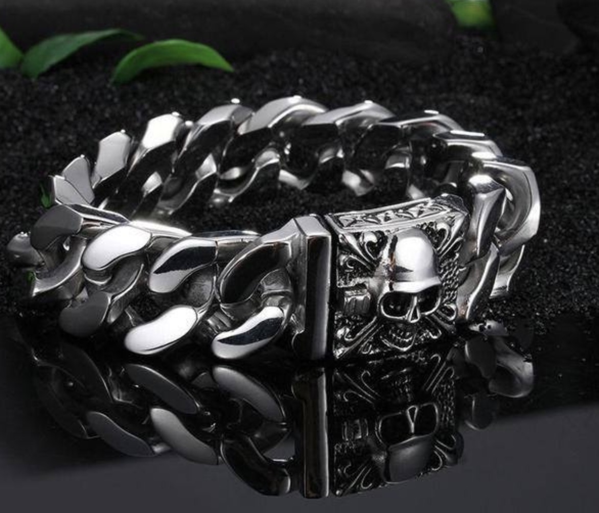 European and American men's stainless steel skull bracelet