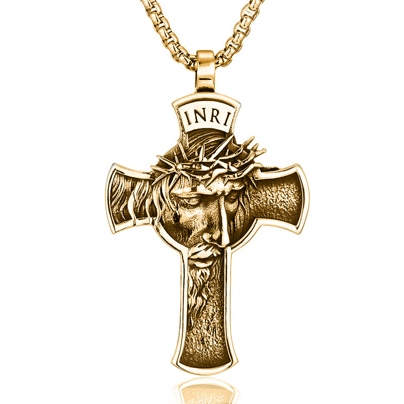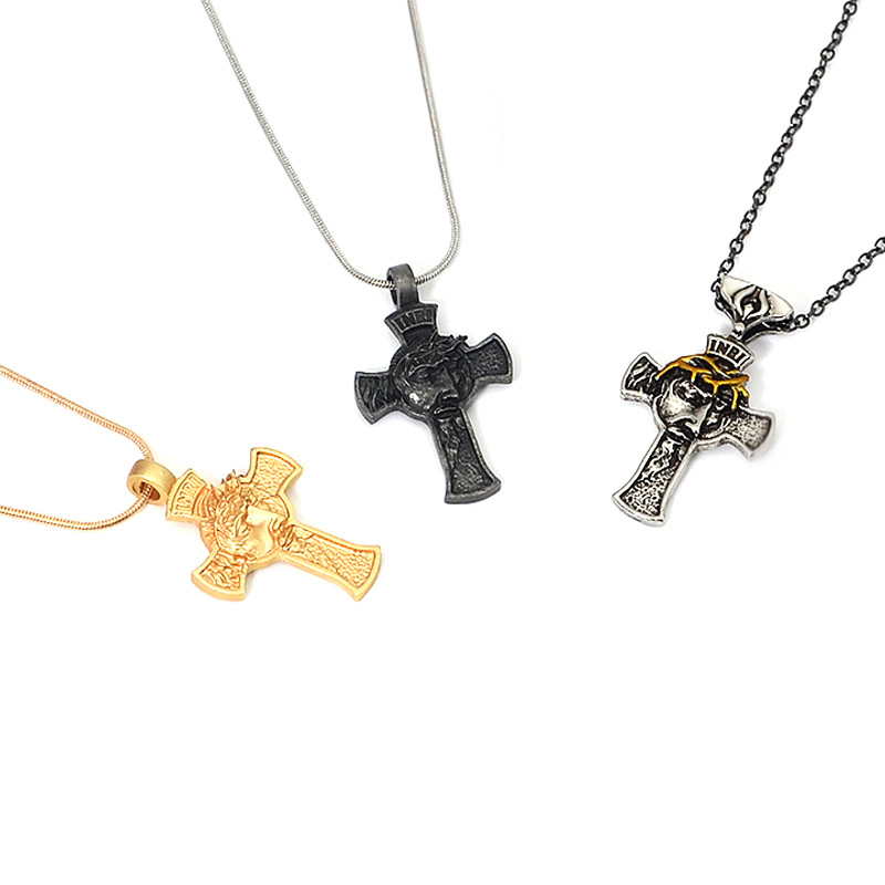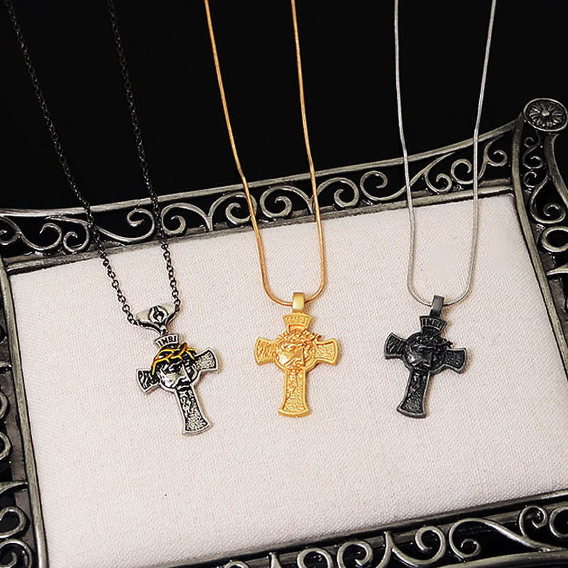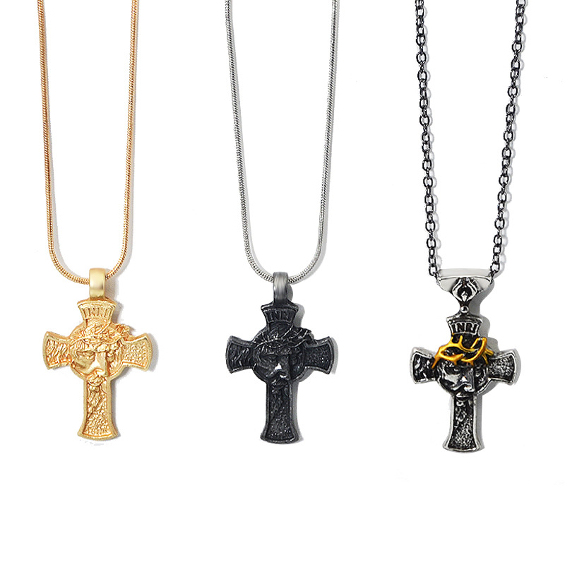 Product information:Color: Portrait cross pendant necklace-Ancient & Gold, portrait cross pendant necklace-antique silverApplicable people: UnisexPendant material: AlloyChain style: cross chainMaterial: AlloyPopular elements: Cross