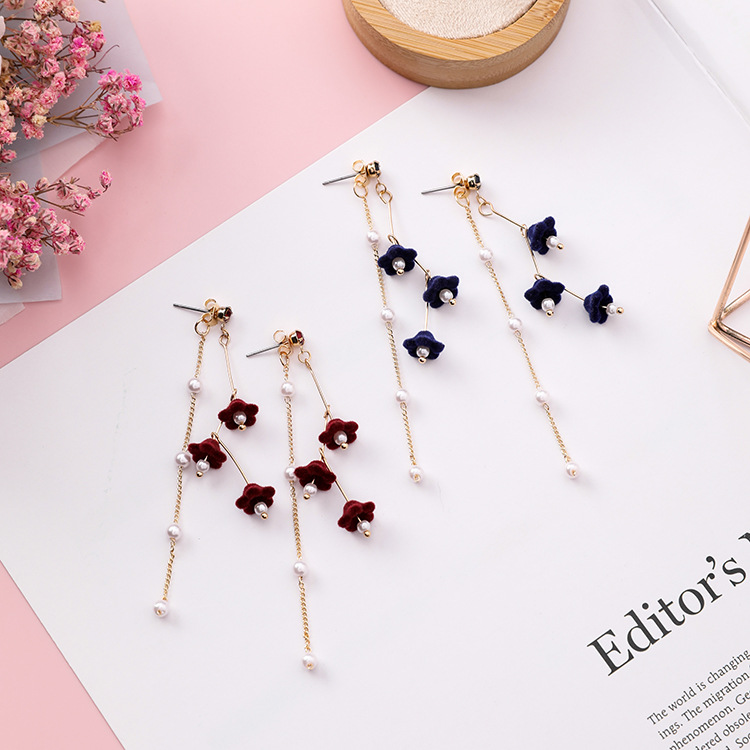 Flower Pearl Tassel Earrings