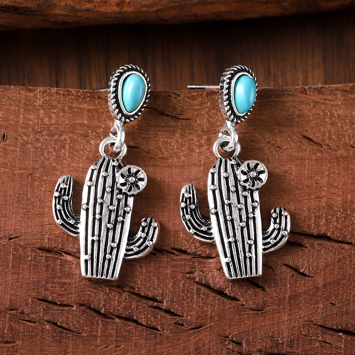Vintage Vintage Cactus Pendant Earrings Turquoise