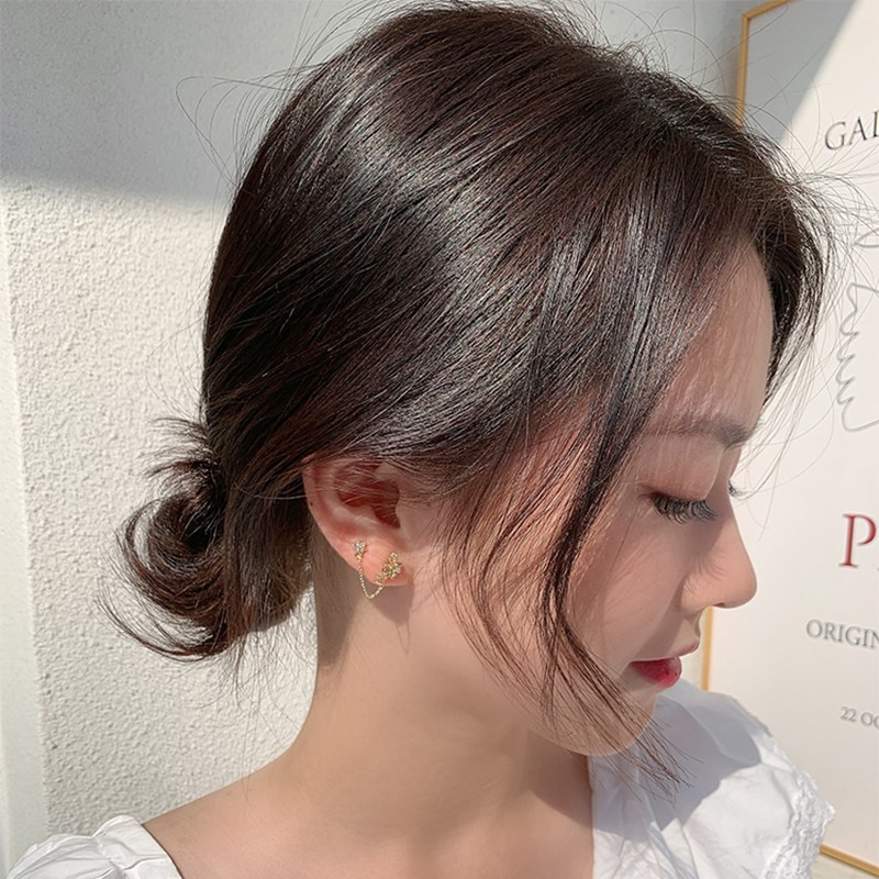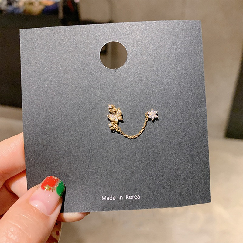 S925 Silver Needle Zircon Flower Tassel Ear Clamp Earrings