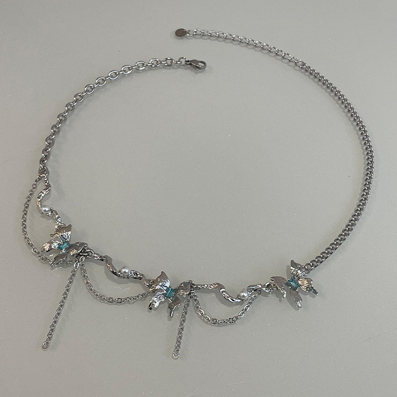 Product information:Color: stitching butterfly tassel necklaceApplicable people: womenPendant material: AlloyChain style: cross chainMaterial: titanium steelShape: Bow, insect, animal/ZodiacPopular elements: ButterflyStyle: sweet and cool