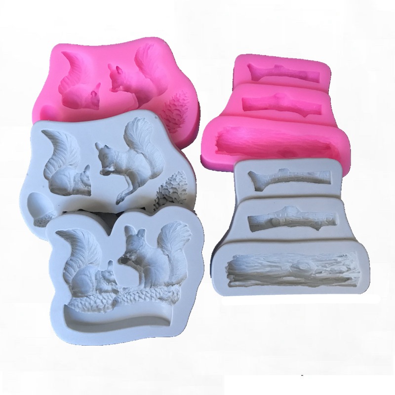 Material: SiliconePurpose: Making fondant cake chocolate mold dripping clay toyColor: gray, pinkStyle: 2 squirrels