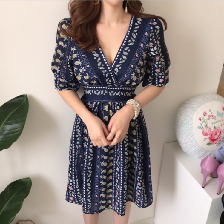 Product information:Pattern: Printing Color: light blue, dark blue Main fabric composition: Polyester Fiber (polyester) Skirt Category: Dress Style: Korean style Process: Printing/printing and dyeing
