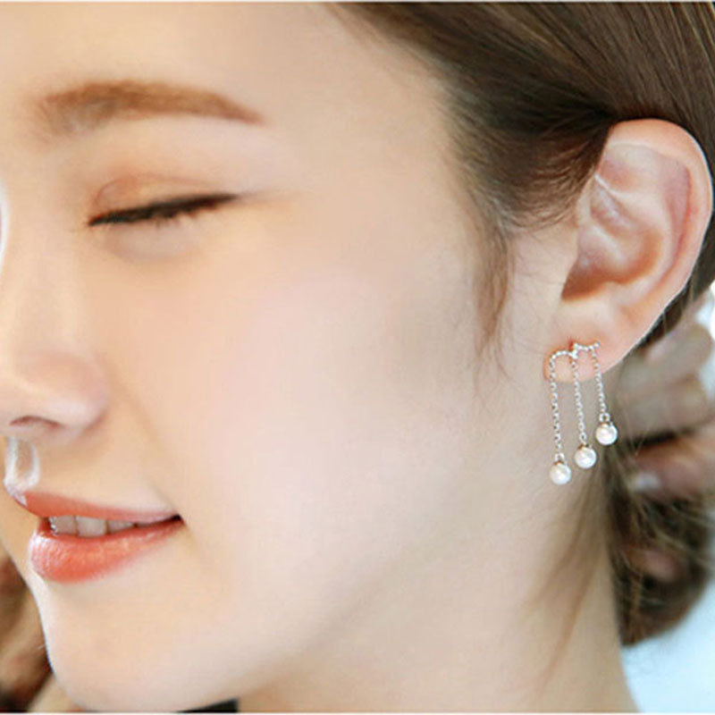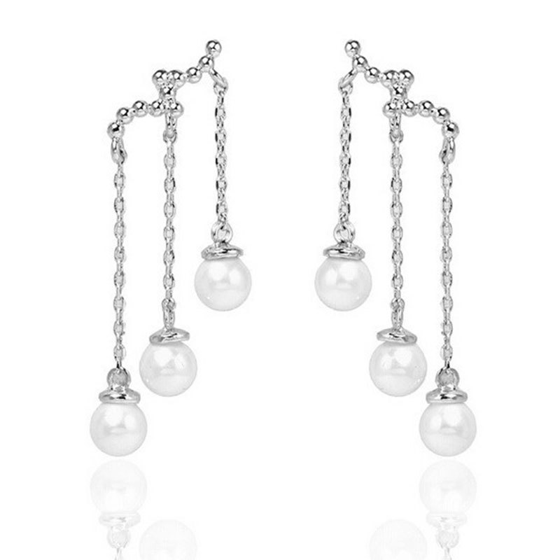 Korean Water Drop Three-Layer Pearl Long Earrings