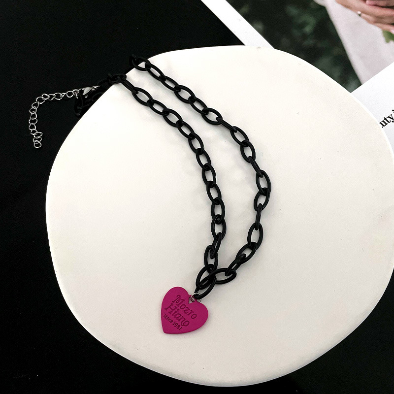 Product information:Color: pink heart necklacePendant material: AlloyStyle: Women'sChain style: O-shaped chainMaterial: Plastic/resinShape: heart shapePopular elements: chain, heart-shaped/heart-shapedStyle: sweet and cool