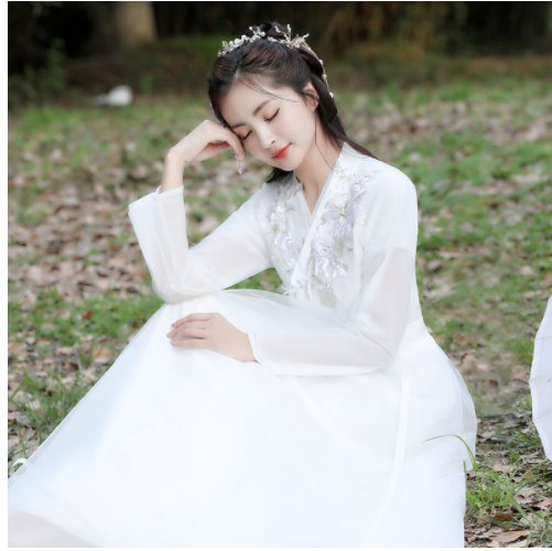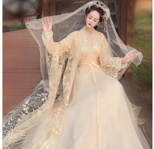 Hanfu + high-grade hairpin + ribbon + eyebrow sticker + high-grade round fan*1set