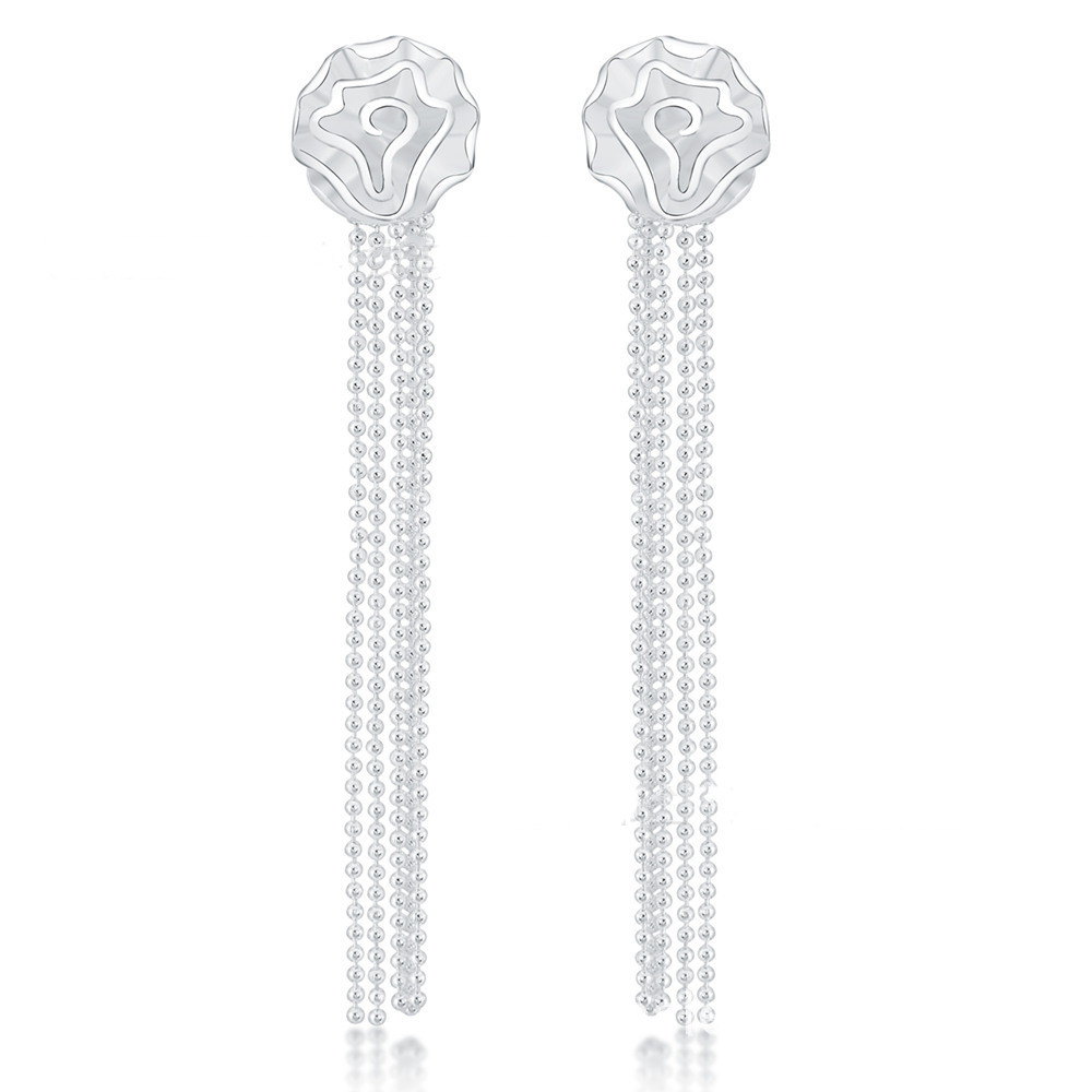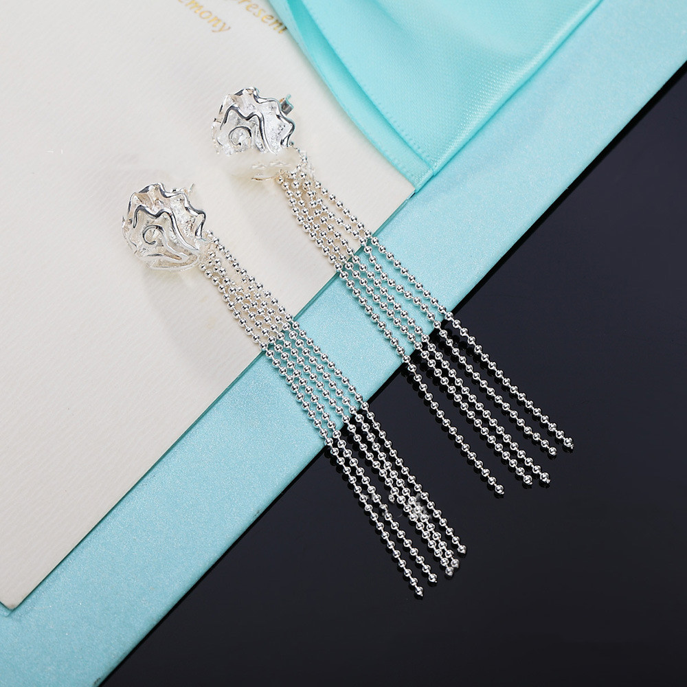 Product information:Treatment Process: Electroplating Type: ear studs Color: Rose pearl chain earrings Style: Women's Material: environmentally friendly copper-plated thick silver Size: 7.4 * 1.2CM