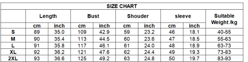 Size: S is suitable for 80-110 catties, M is suitable for 110-125 catties, L is suitable for 125-145 catties, XL is suitable for 145-165 catties, 2XL is suitable for 165-185 catties
