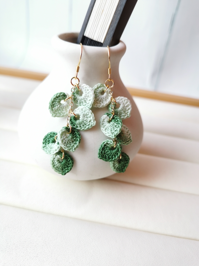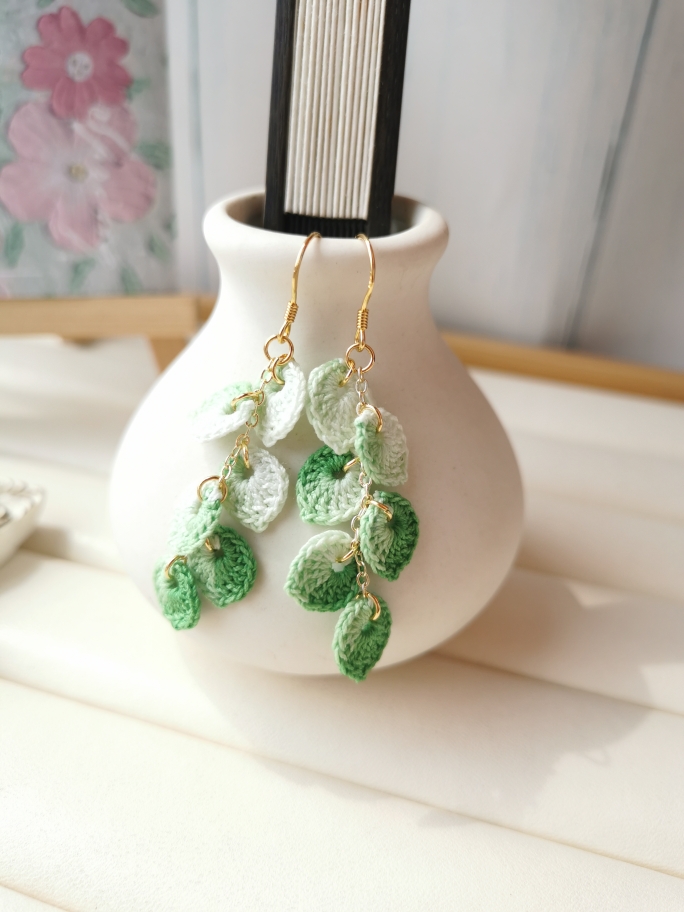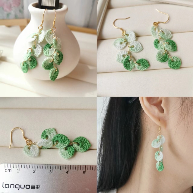 Product information:Pattern: Plant flowersStyle: Ethnic StyleColor classification: I031 gradient green leaf ear hook, I031 gradient purple leaf ear hook, I031 gradient dark green leaf ear hook, I032 gradient green leaf ear clip
