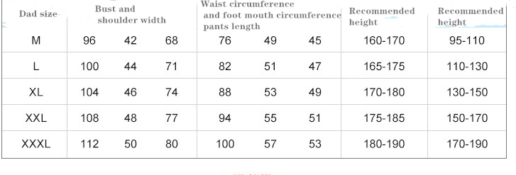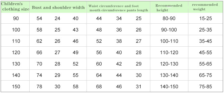 Suitable height: size 90 for children, size 100 for children, size 110 for children, size 120 for children, size 130 for children, size 140 for children, size 150 for children, size S for women, size M for women, size L for women, XL size for women, 2XL for women , M size for men, L size for men, XL size for men, 2XL size for men, 3XL size for men