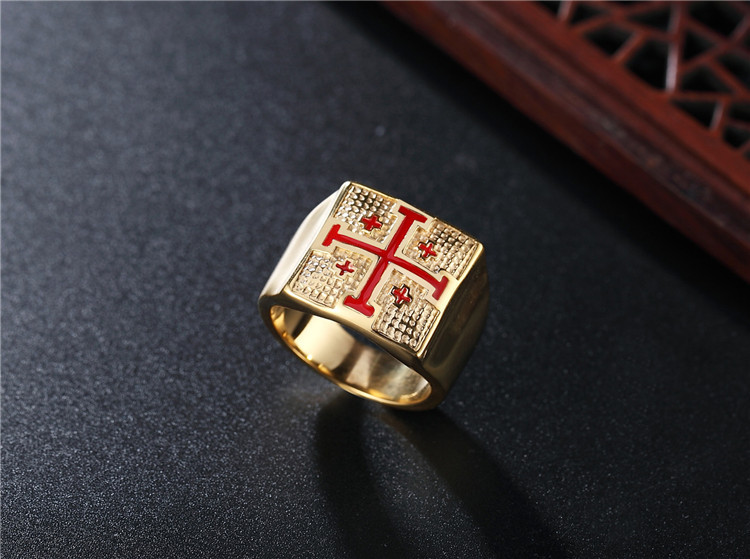 Retro Personality Red Cross Men'S Titanium Steel Ring Religious Jewelry