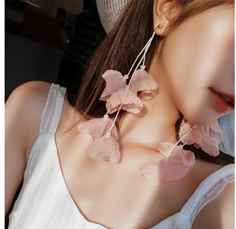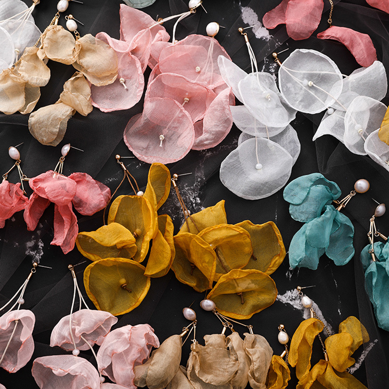 Chiffon Handmade Flower Shape Drop Earrings