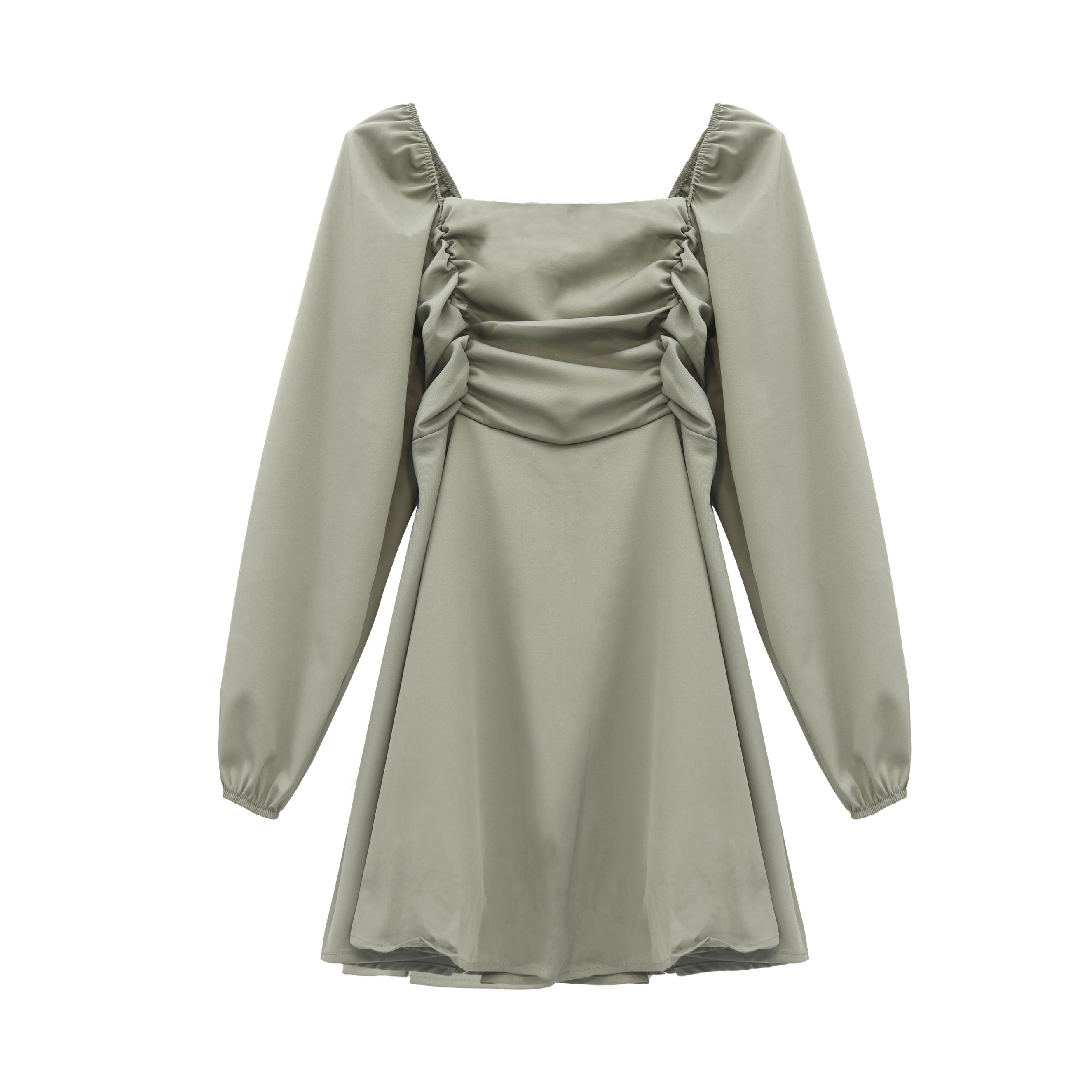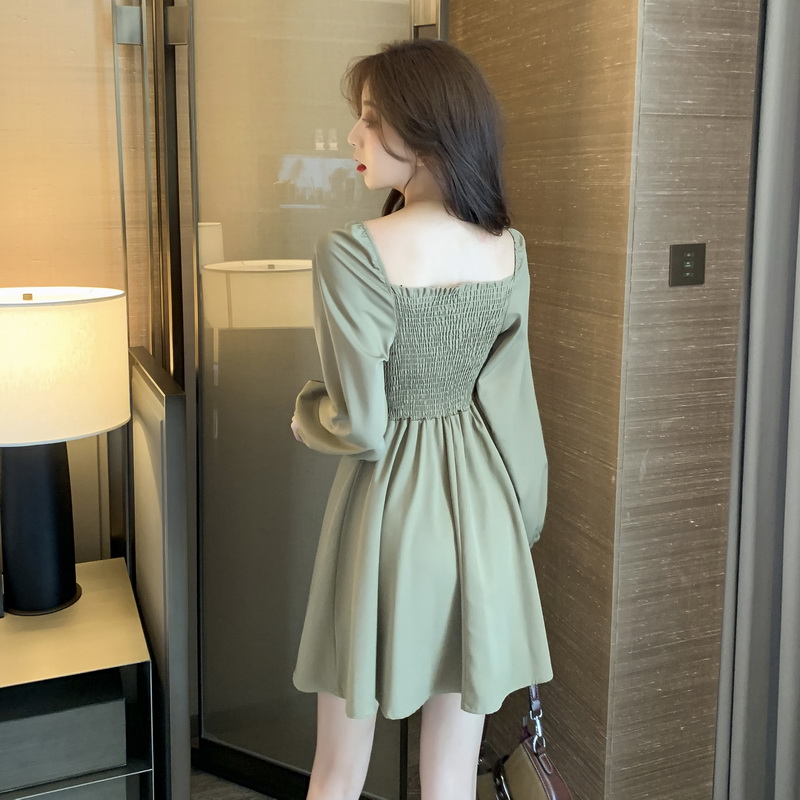 pattern: plainStyle: CommuterCommuter: KoreanCollar type: square collarWaist type: high waistColor classification: khaki, white, purple, blackSkirt type: A-line skirtSleeve length: long sleeve