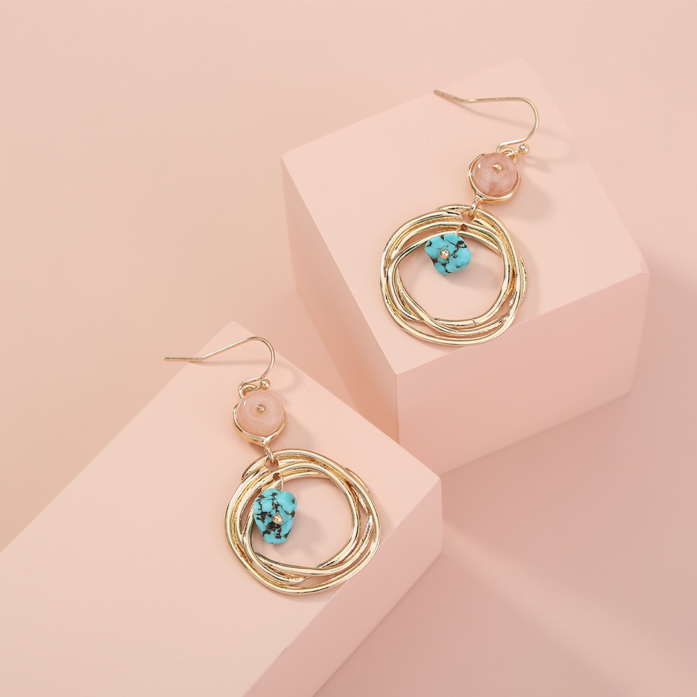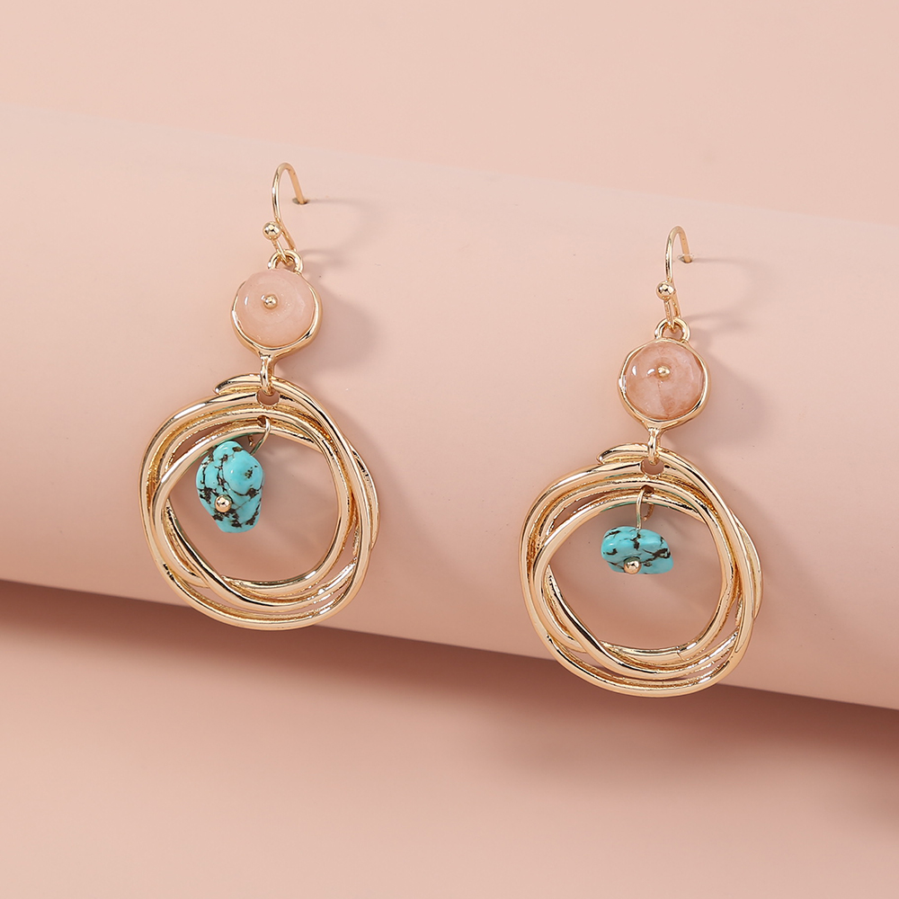 European and American earrings, creative retro geometric natural stone, metal tassel earrings