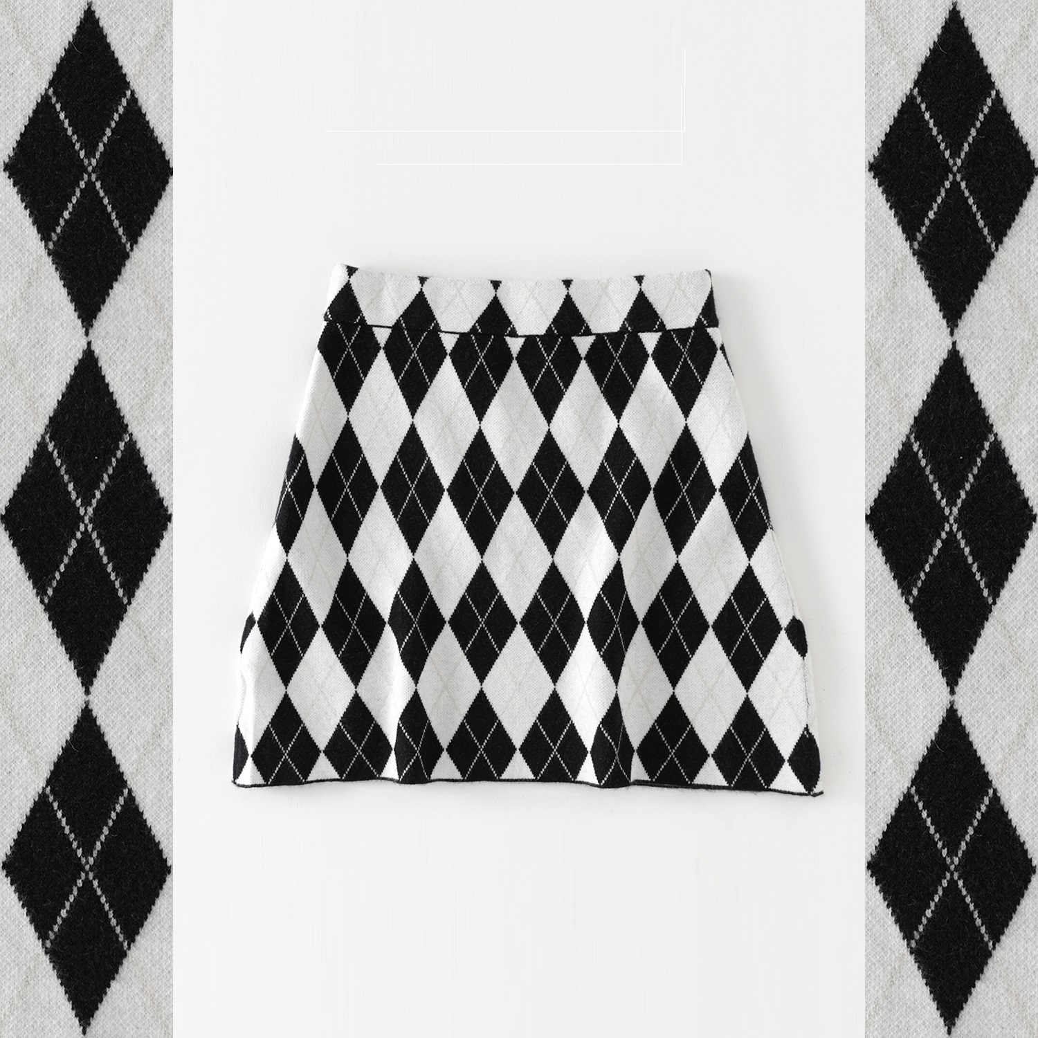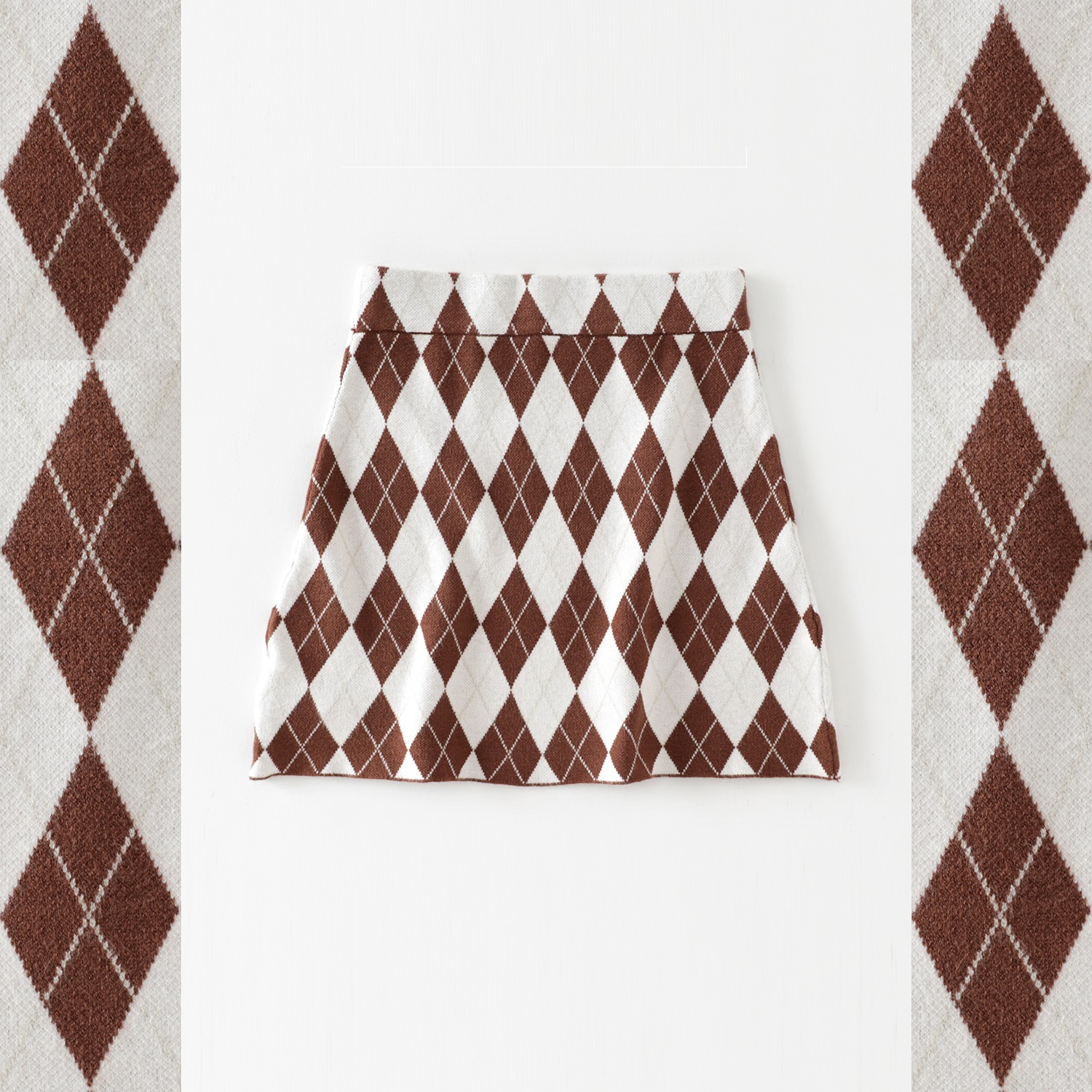 Product information:Size: S,M Pattern: Plaid Waist type: high waist Color classification: Brown rhombus, black rhombus Skirt-type: A- line skirt Skirt length: short skirt Profile: Type A