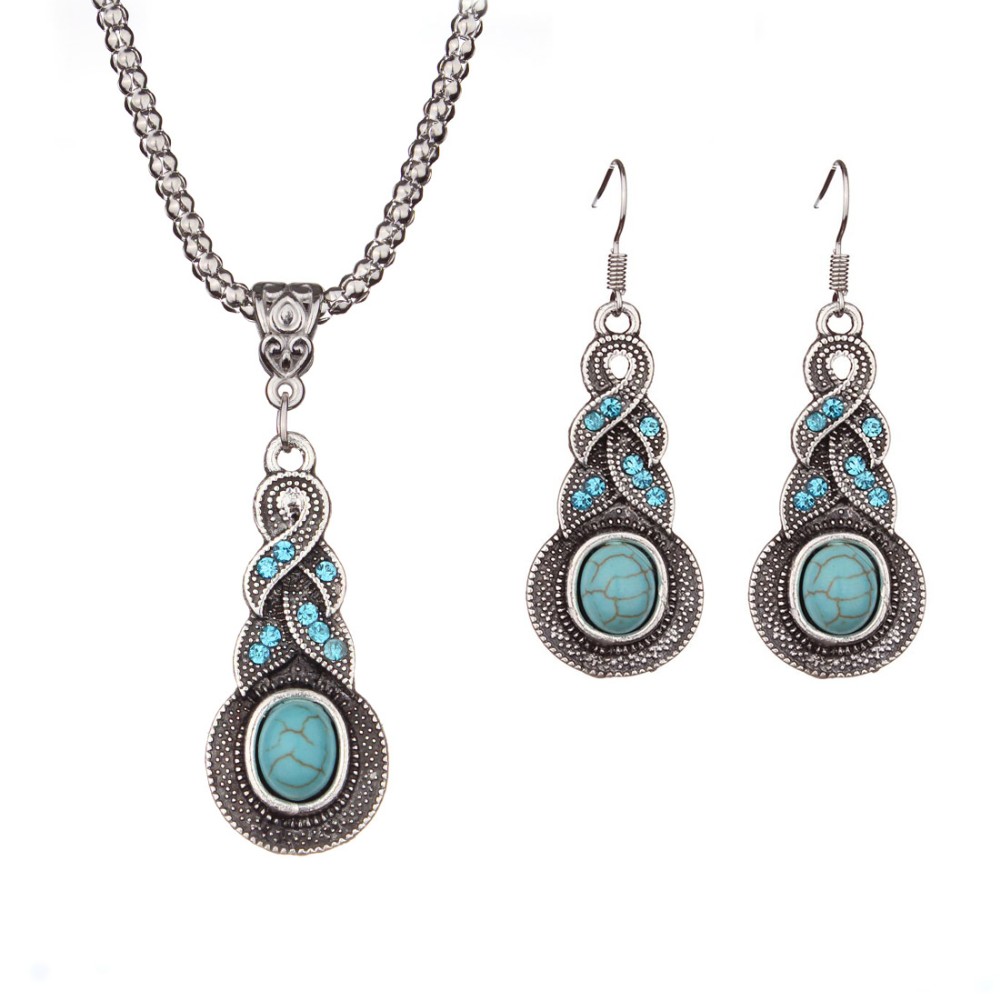 Moda Nupcial Conjuntos de Joyas Tibetano Howlite Collar de Cadena de Plata de Color de Agua Gota Pendientes Cristalinos de Las Mujeres Collares Conjunto