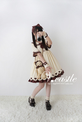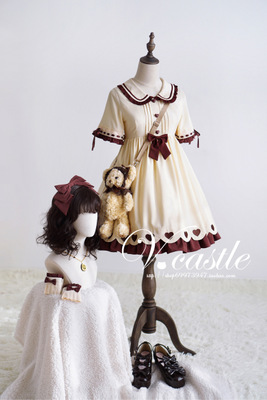 Caramel Pudding Women's Cute Beige Lolita Dress Short Sleeve Heart Buttons Summer One Piece Color Beige