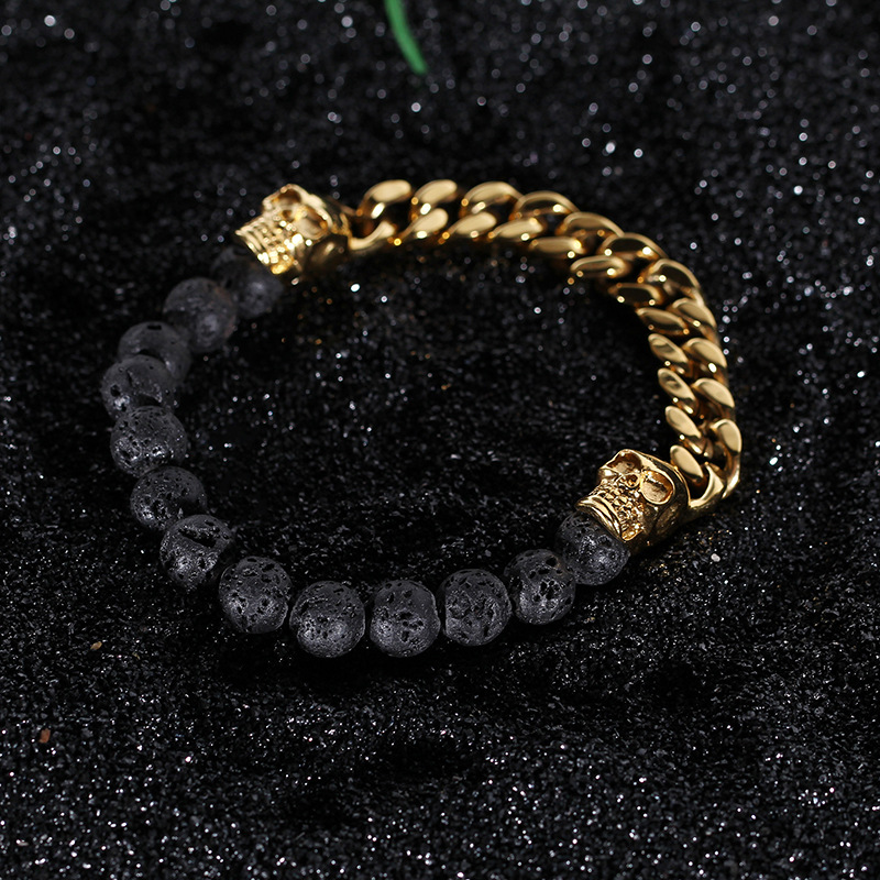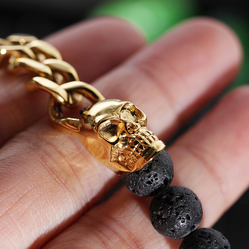 Skull prayer beads volcanic stone bracelet
