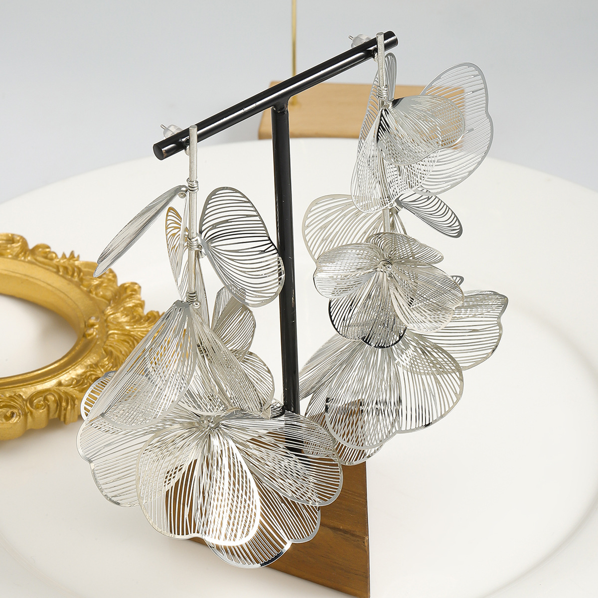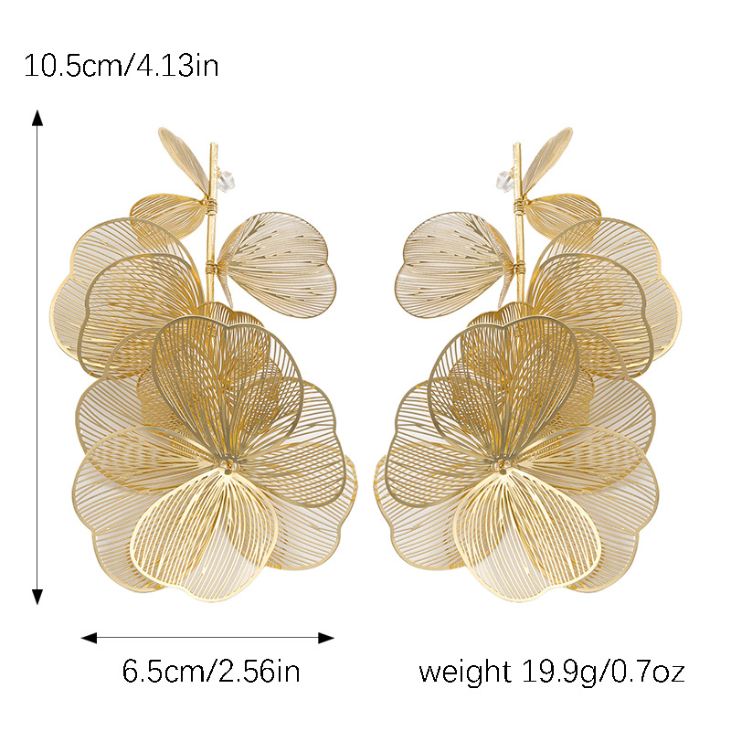 Flower Temperament Entry Lux Vintage Earrings Alloy Three-dimensional Flower Long