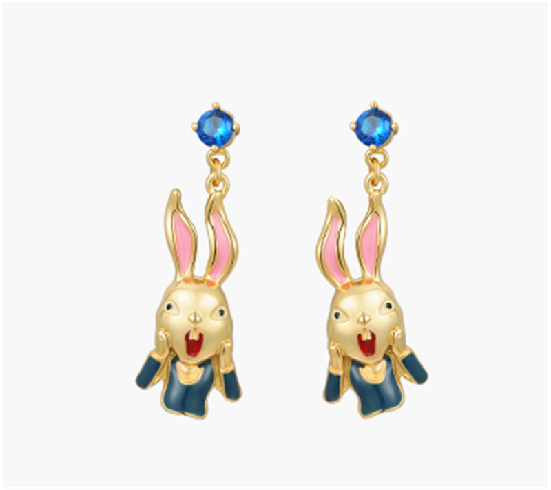 Famous Painting Cover Face Screaming Rabbit Characteristic Drip Earrings