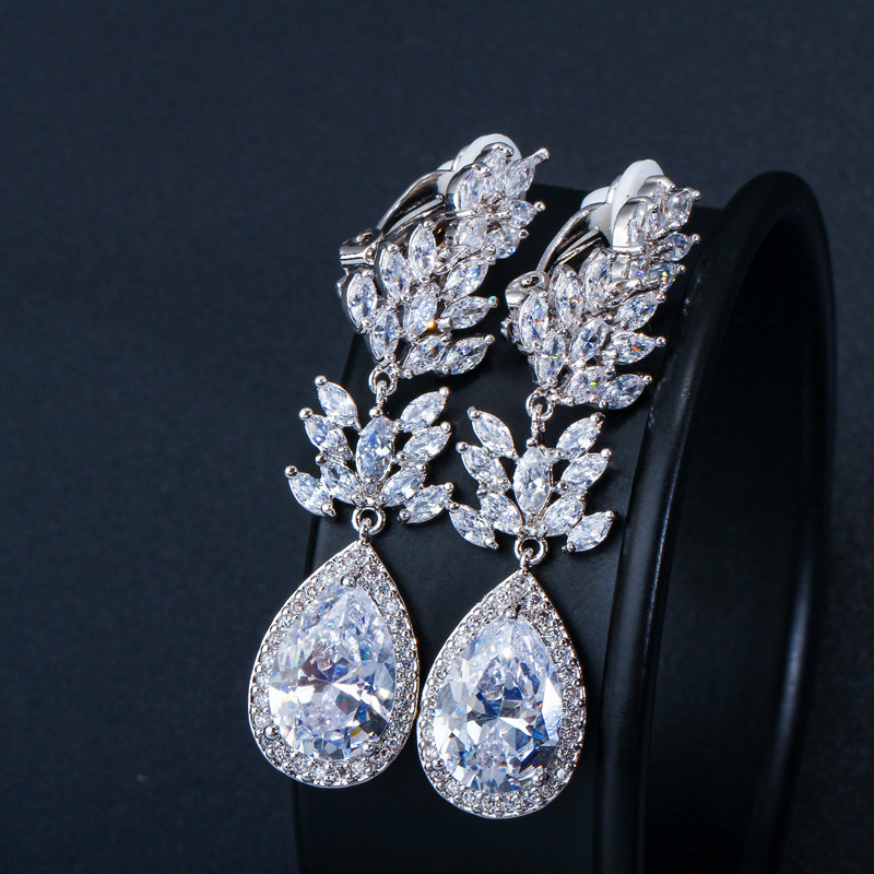 Metal material: copperMain stone material: AAA + zirconProcess: Micro-inlaid, real gold plating, color retention and no allergiesEarring size: 5cm*1.2cm
