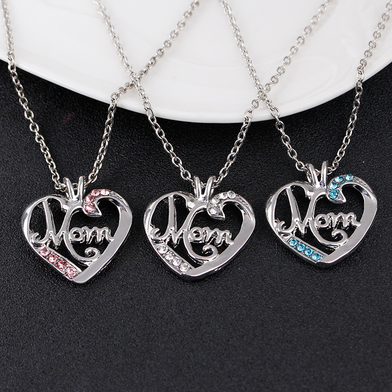 European and American cross-border jewelry fashion creative mother's day gift MOM love diamond pendant necklace accessories