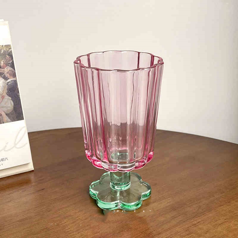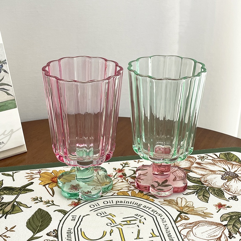 Product information:Size: Cup-mouth diameter 8cm, Cup height 13cm Capacity: 245ml Material: Lead-free glass Color classification: rattan green-glass cup, flower Pink-glass cup