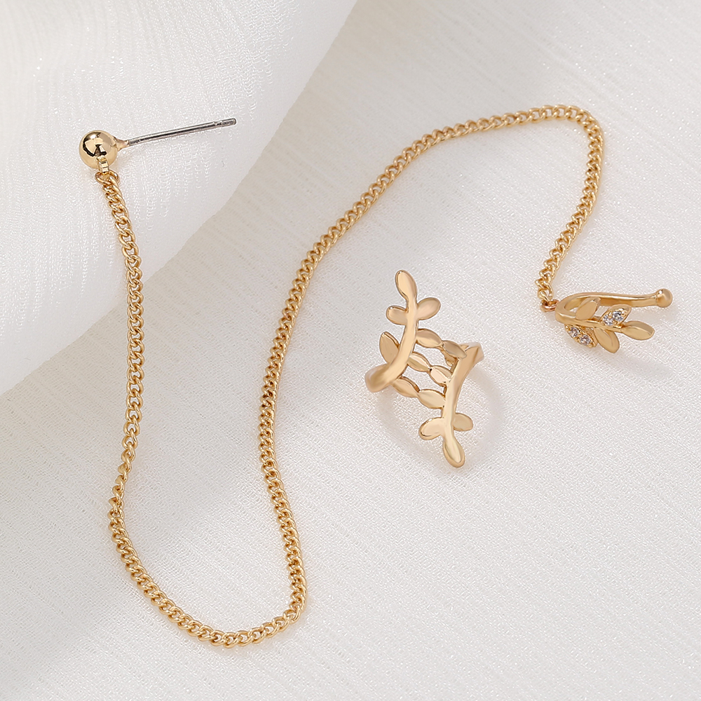Indian Dance Nose Ring Jewelry Set Ear Clip Earring Leaf Nose Nail Nose Chain One Pierced Jewelry