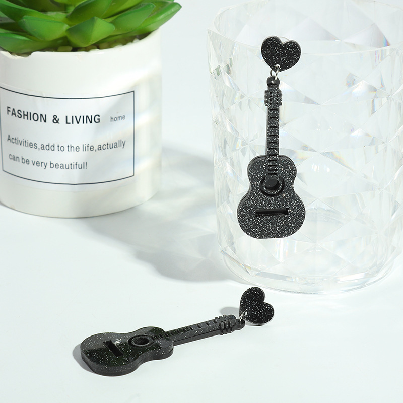 Material:PlasticStyle:Fashion minimalistFeatures:Guitar shapeColour:love pink,love black,round head sky blue,round head black,round head pink,antique gold