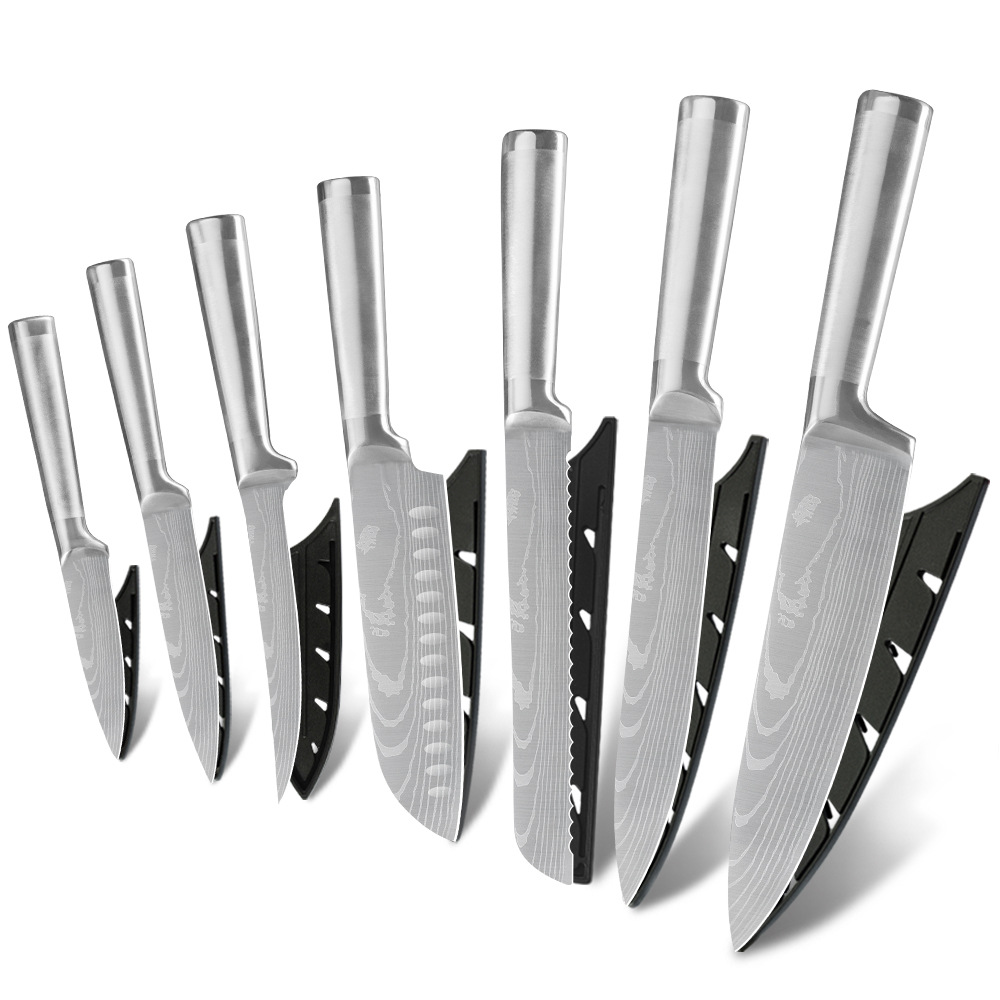 Specifications: 7-piece stainless steel knife set, 3.5-inch fruit knife, 5-inch universal knife, 6-inch boning knife, 7-inch Japanese kitchen knife, 8-inch meat cutter, 8-inch bread knife, 8-inch chef's knife