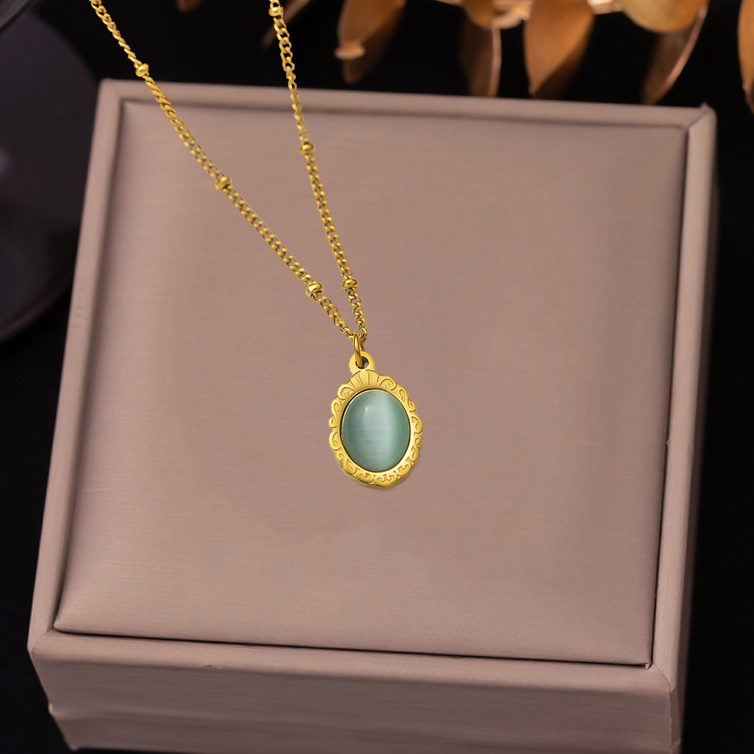 Product information:Treatment Process: Electroplating Color: XL311 jade necklace gold Applicable population: Female Pendant material: titanium steel Chain style: curb necklace Material: titanium steel Shape: Geometry
