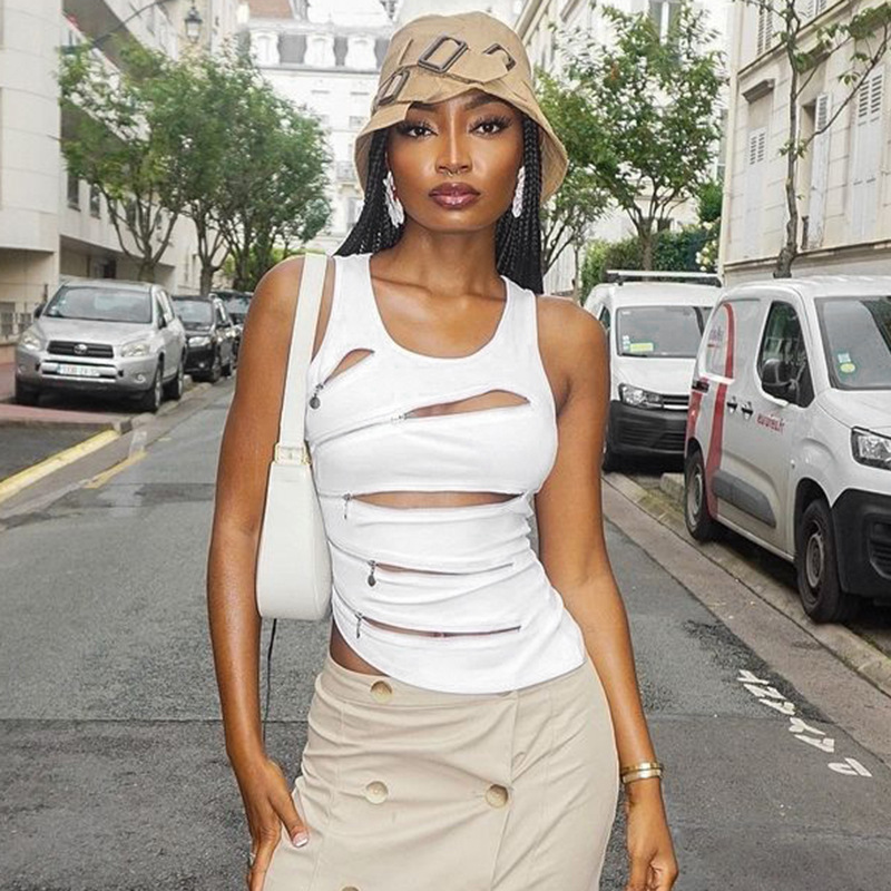 Product information: Color: white, black Size: S,M,L Version: tight Popular elements: zipper Style: pullover Main fabric composition: Polyester (polyester fiber) Sleeve length: sleeveless