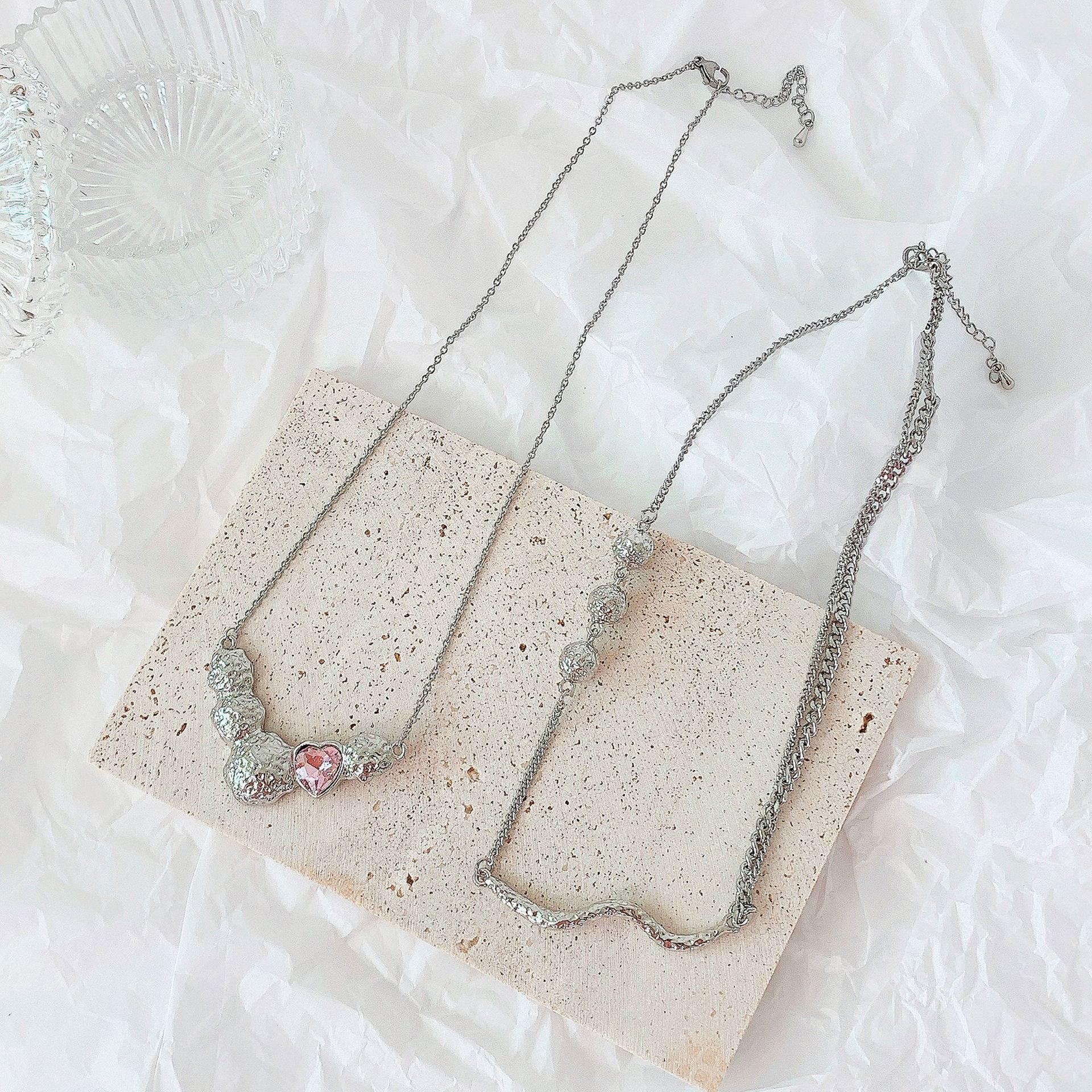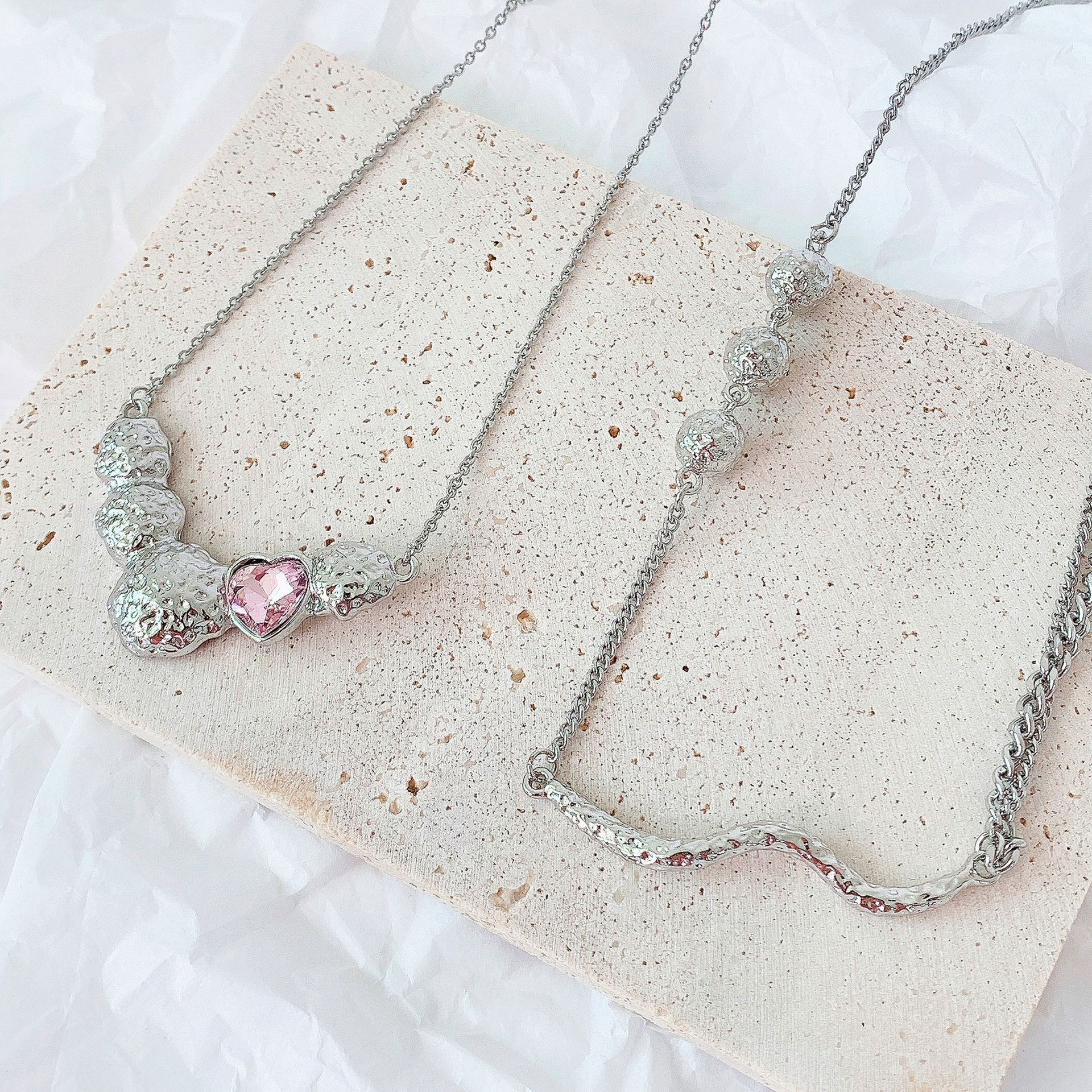 Color: Ball Necklace, Pink Heart Necklace