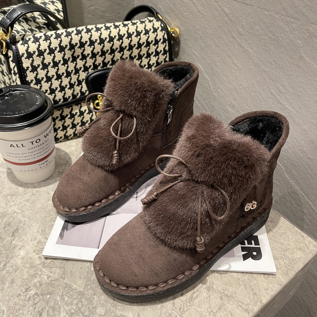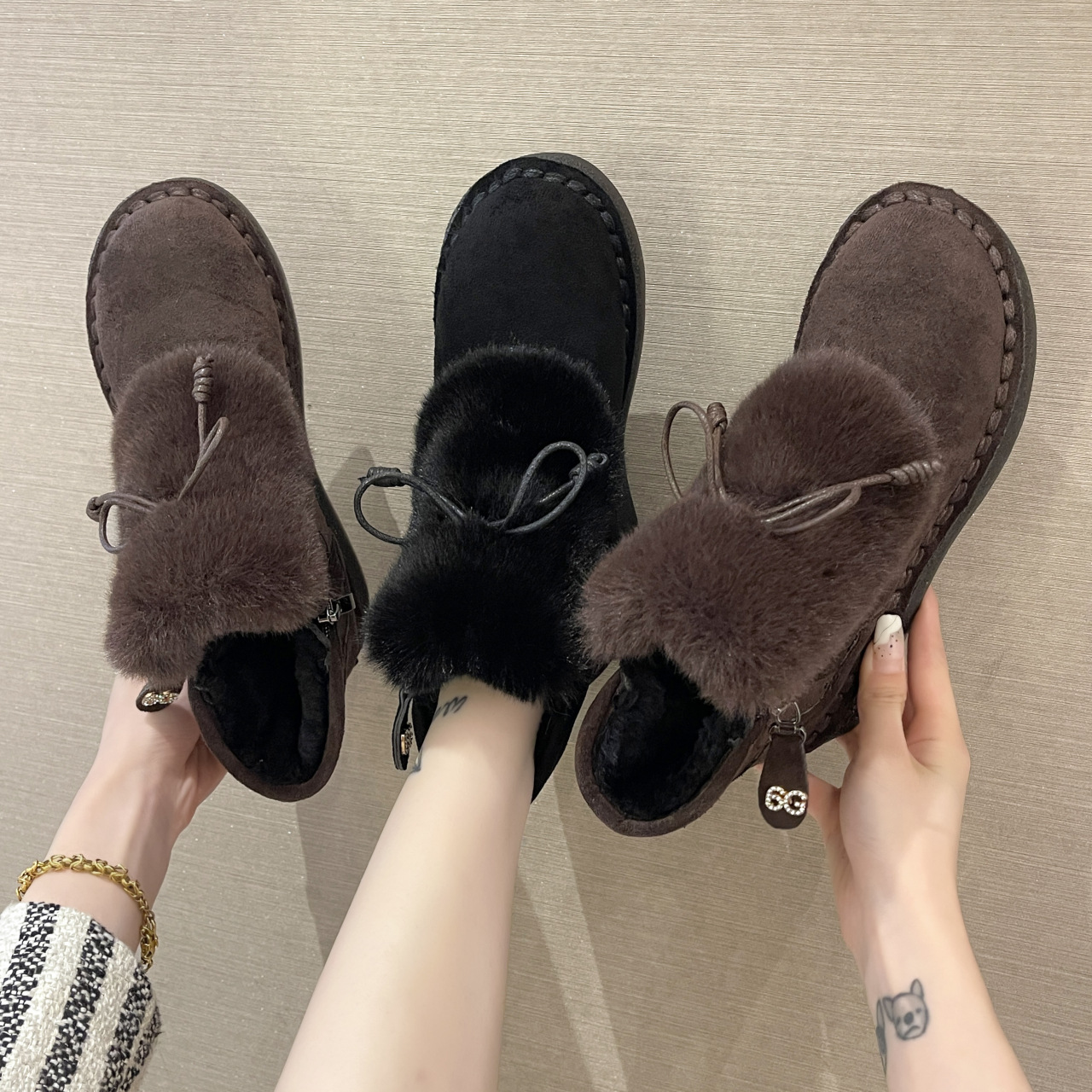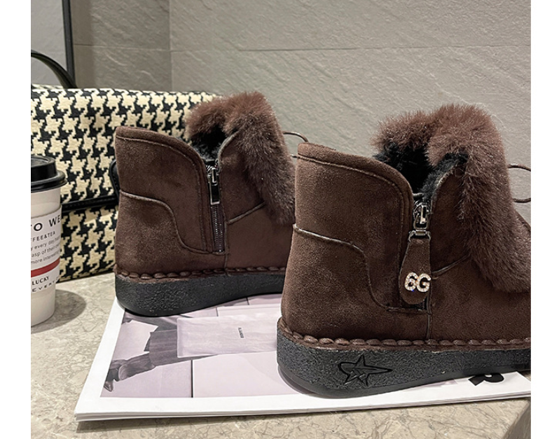 Vamp material: suedeSole material: rubberHeel shape: spongy baseInner material: artificial short plushOpening depth: deep openingStyle: Korean version