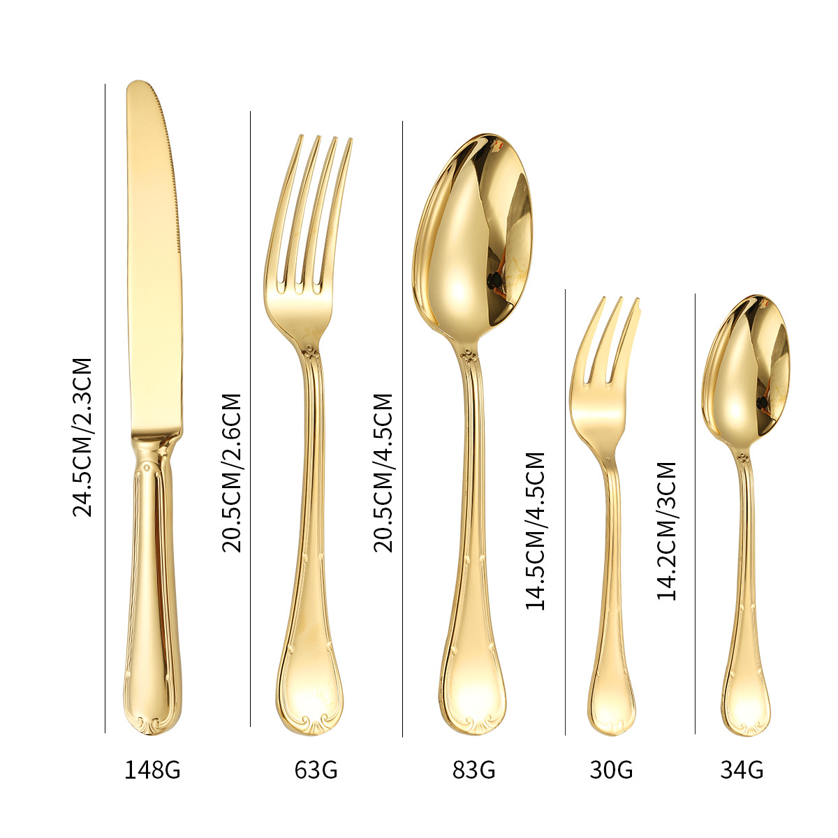 Color: Silver 5-piece set, gold 5-piece set, main knife/silver, main spoon/silver, dinner fork/silver, dessert spoon/silver, dessert fork/silver, main knife/gold, main spoon/gold, dinner fork/gold, dessert spoon/gold, dessert fork/gold, main knife/Phnom Penh, main meal spoon/Phnom Penh, dinner fork/Phnom Penh, dessert spoon/Phnom Penh, dessert fork/Phnom Penh