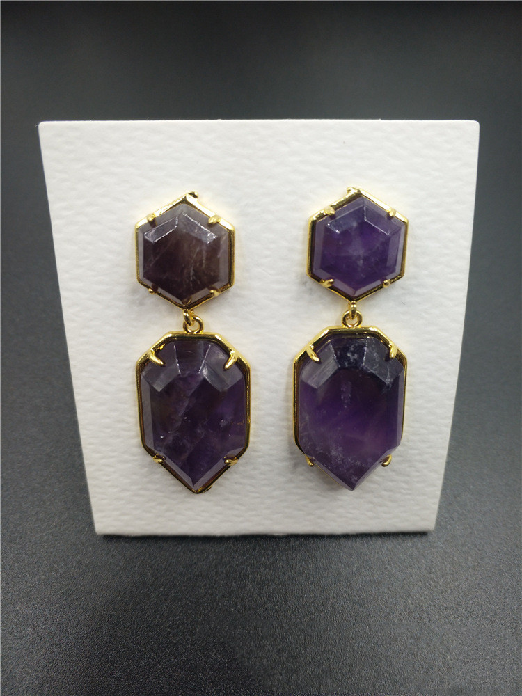 Product InformationName: Natural crystal earringsType: EarringsStyle: UnisexShape: HexagonSize: 45*15mm·Material quality: natural crystal gem