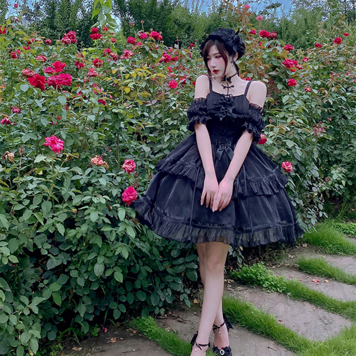 Color classification: black skirt, hand sleeve (1 pair), black bow