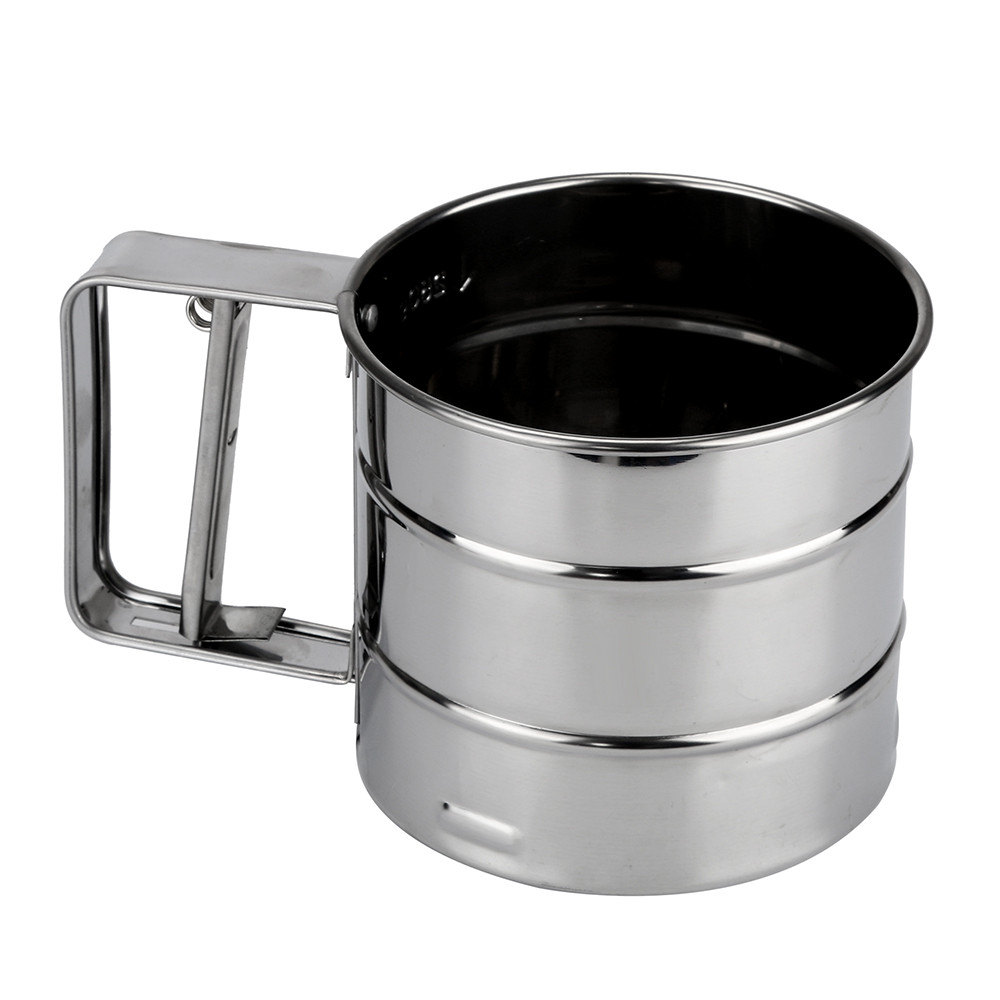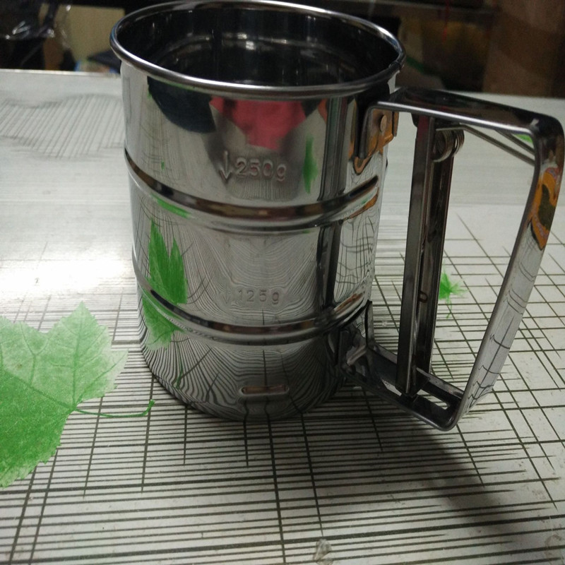 Product name: cup-shaped powder sieveMaterial: Stainless steelSpecification: height 9.5CM, diameter about 10CM(Manual measurement, allowable error)Bagged