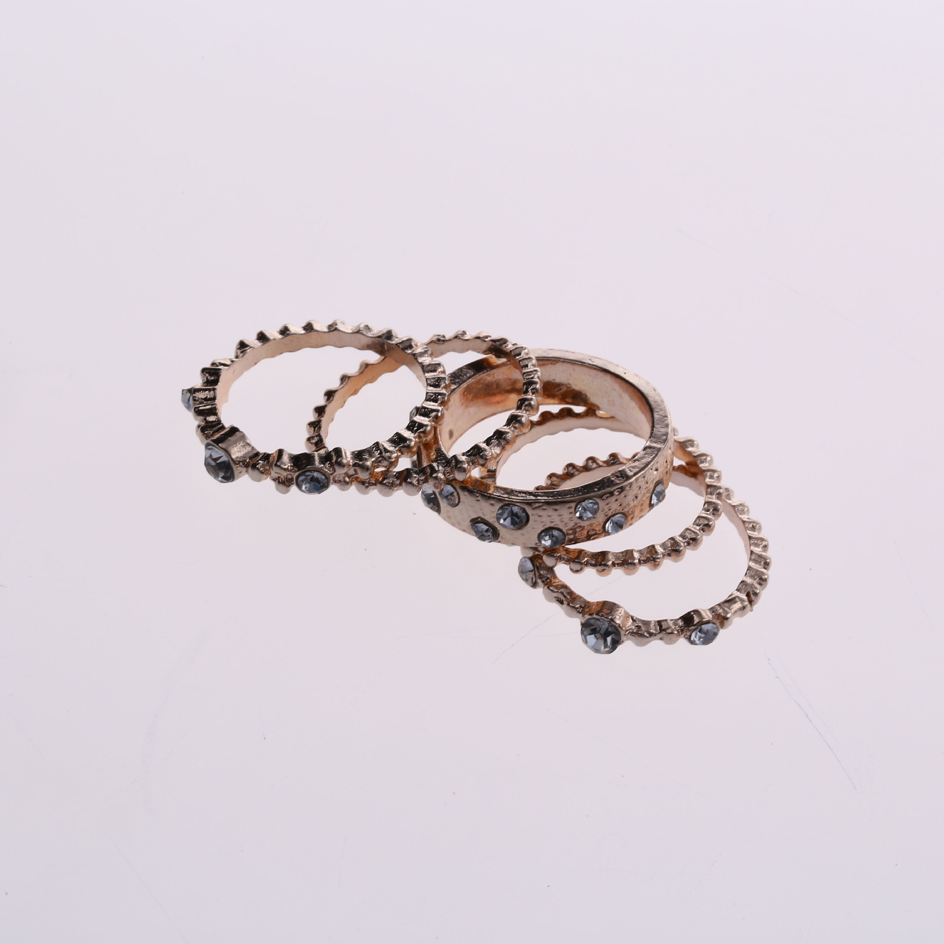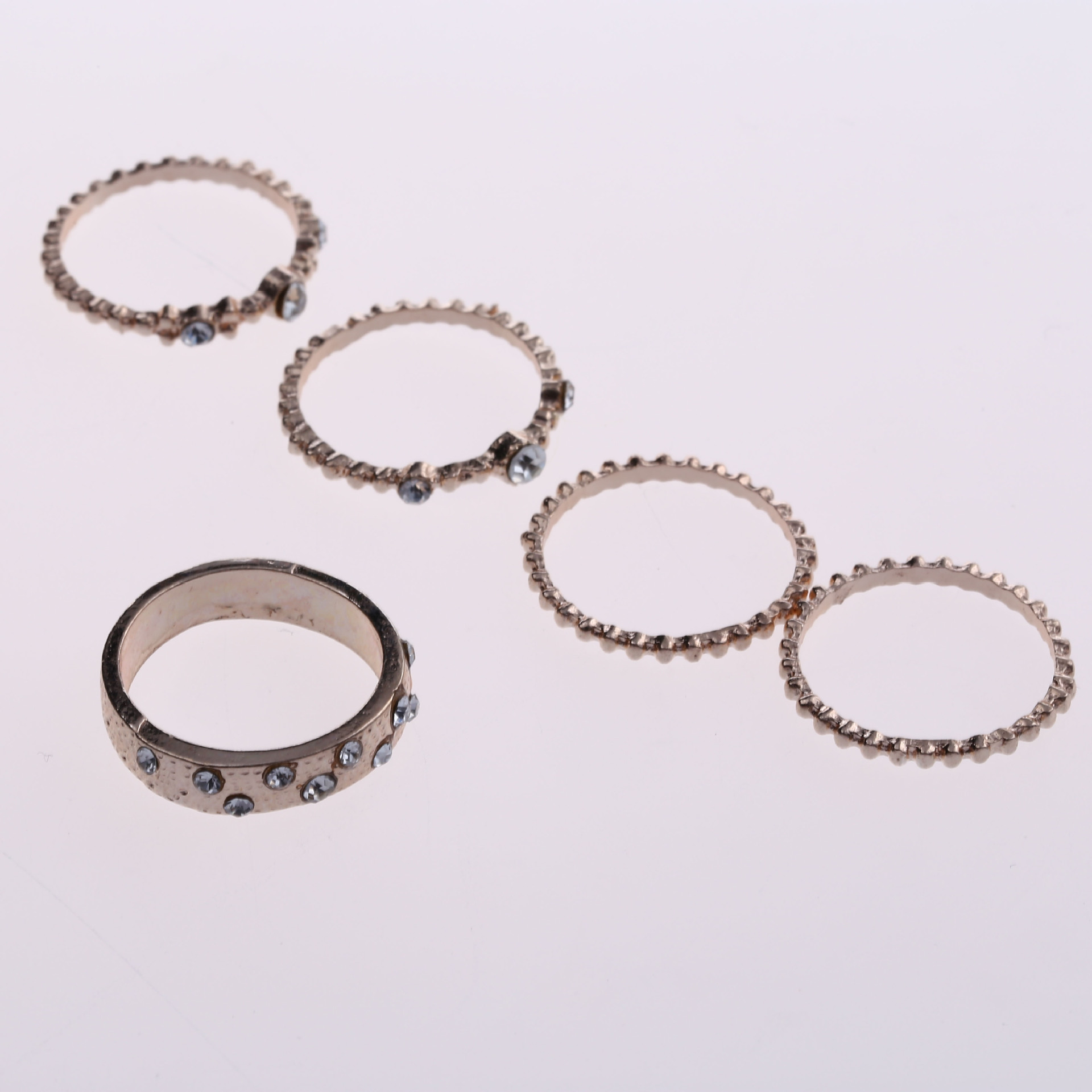 Product Name: Rose gold stackable diamond set five-piece ring European and American gemstone ring Fashion ring ring