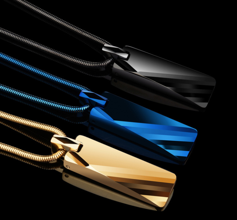Material: tungsten steelStyle: Europe and AmericaStyle: unisexModeling: GeometryPendant size: 3.5cm high * 1cm wide * 0.48cm thicknessMatching chain: 1.5mm*50cm hard snake chain