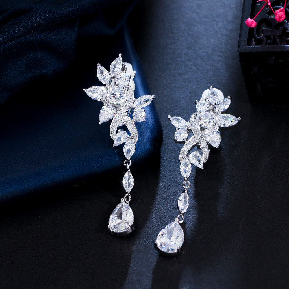 Product Information:Material: CopperStyle: FemaleShape: Water drop shapeTreatment process: zircon inlaidPopular elements: Crowns, daisiesEarring size: 5 CMPacking list:Earrings X1Pair